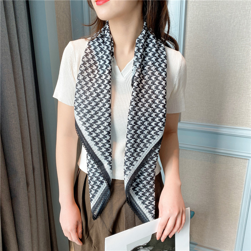 새로운 한국 다이아몬드 석면 스카프 클래식 Houndstooth 90cm 대형 사각 봄과 여름 에어컨 숄 전문 스카프