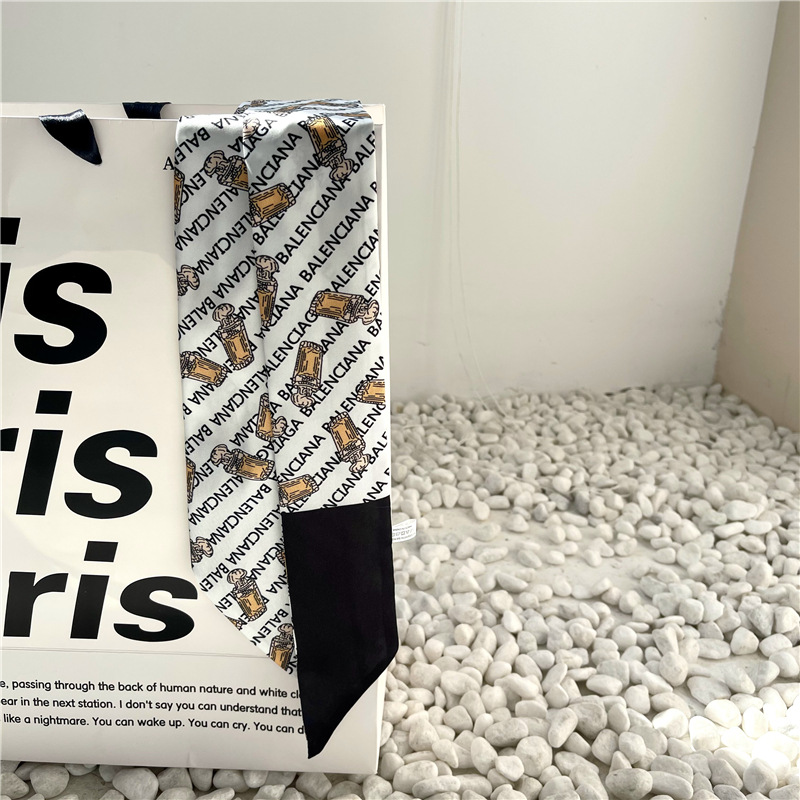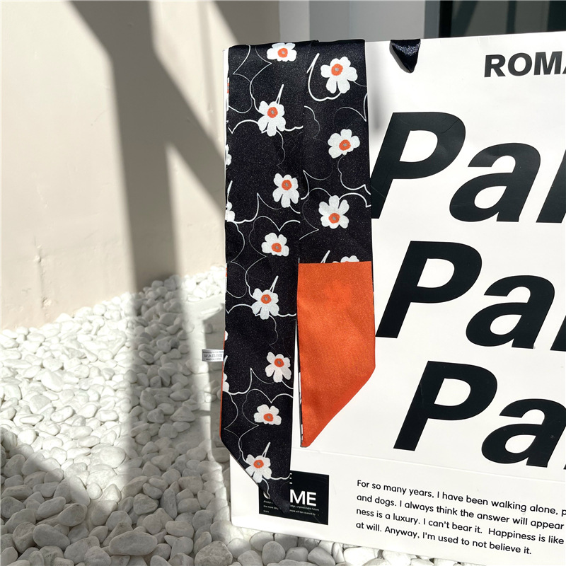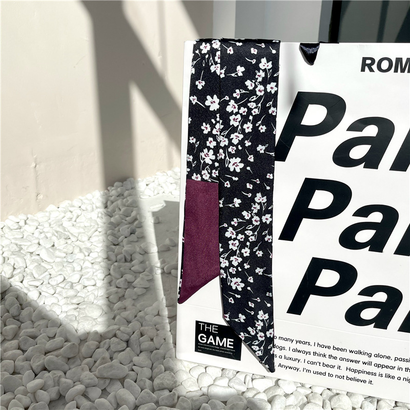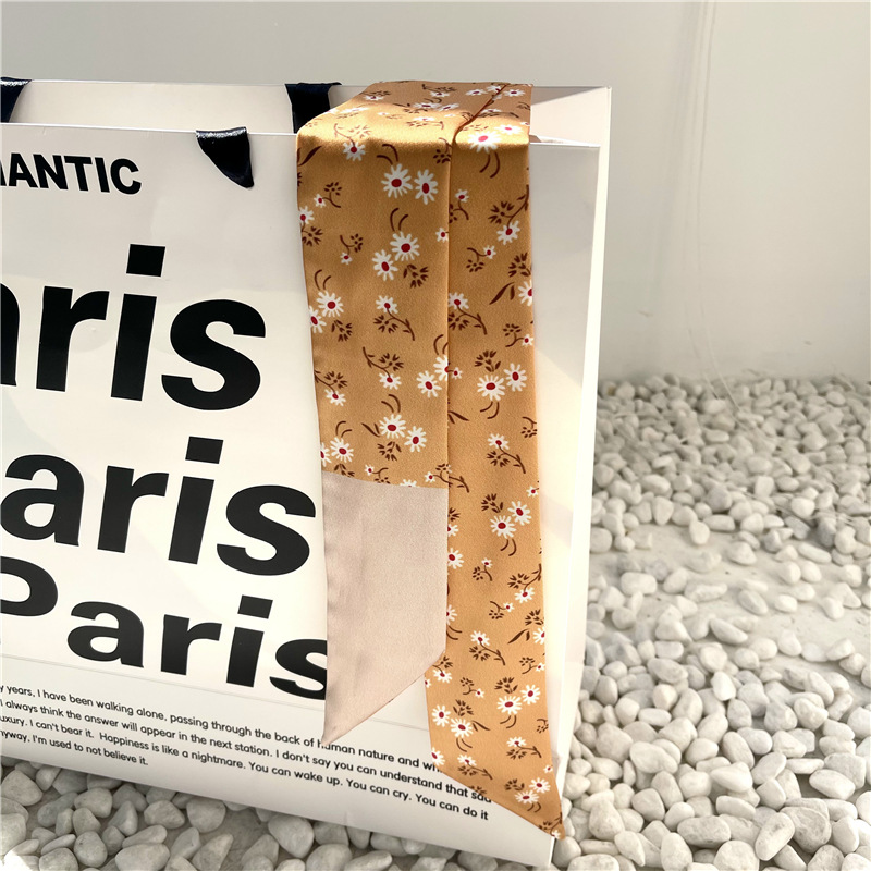 2021 빈티지 프랑스 스카프 헤어 밴드 넥타이 머리 리본 넥타이 가방 모조 실크 작은 긴 좁은 얇은 스카프