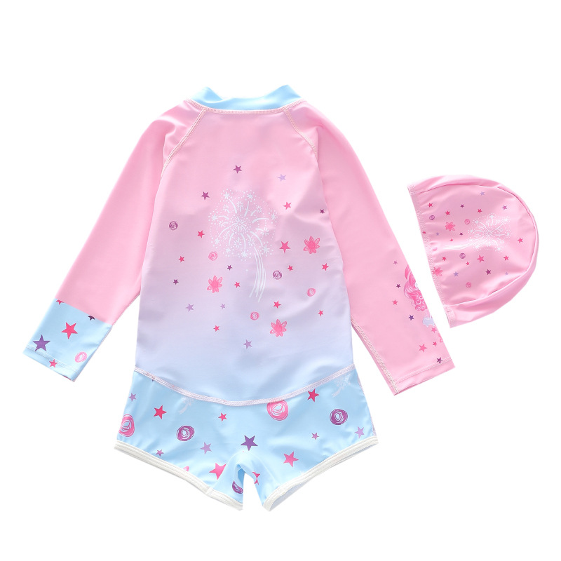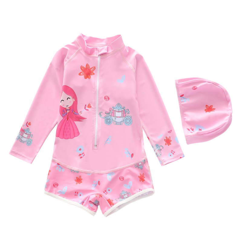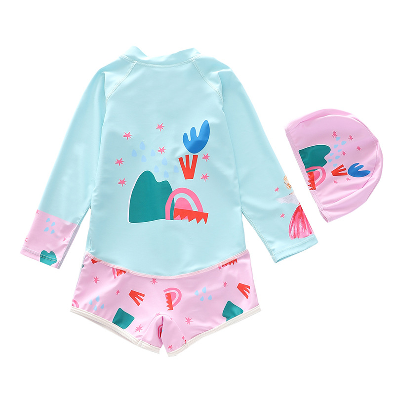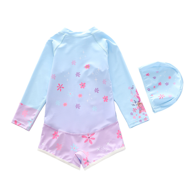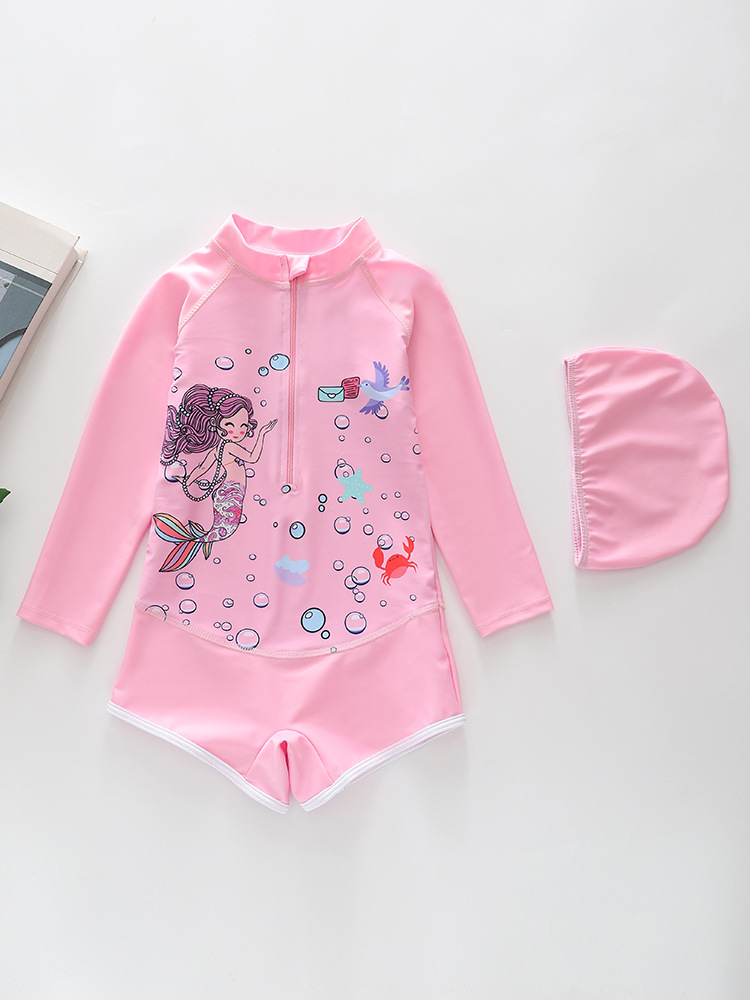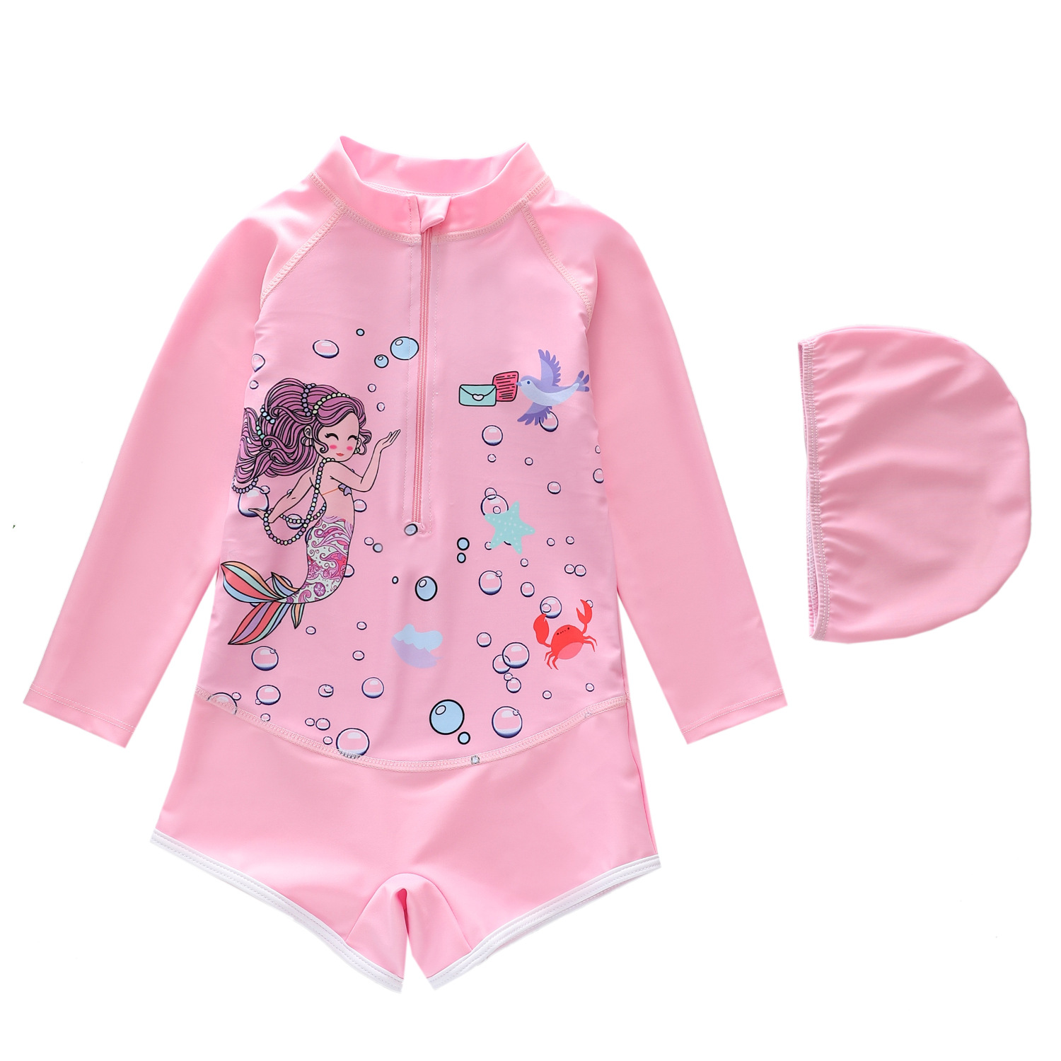 새로운 어린이 수영복 여자의 원피스 만화 자외선 차단제 긴 소매 수영복 한국 공주 작은 중간 크기의 어린이 여아 수영복