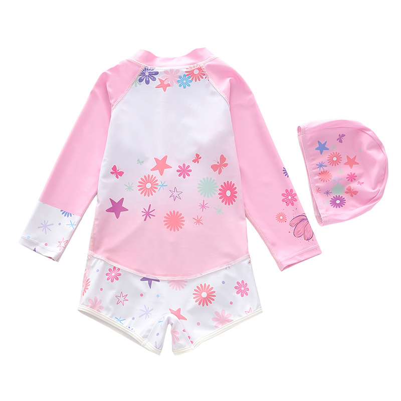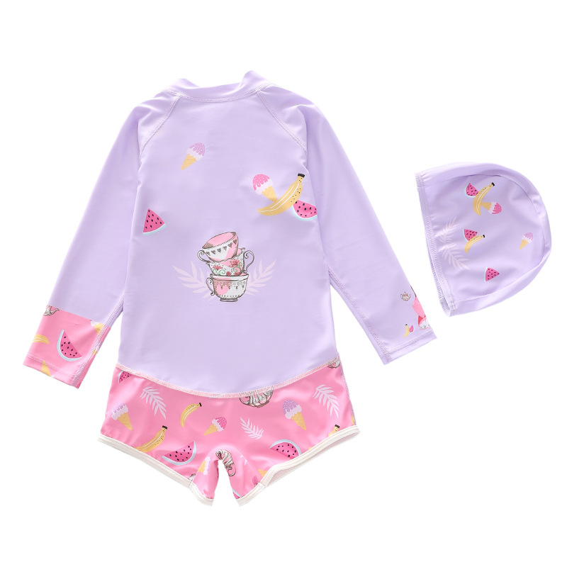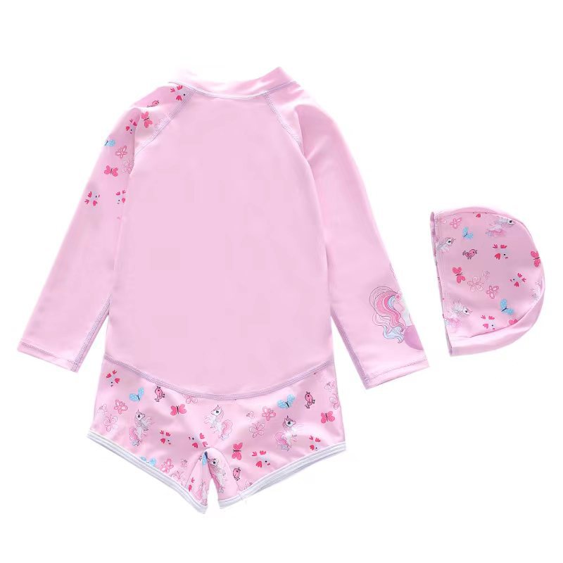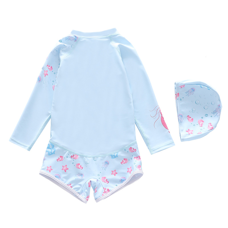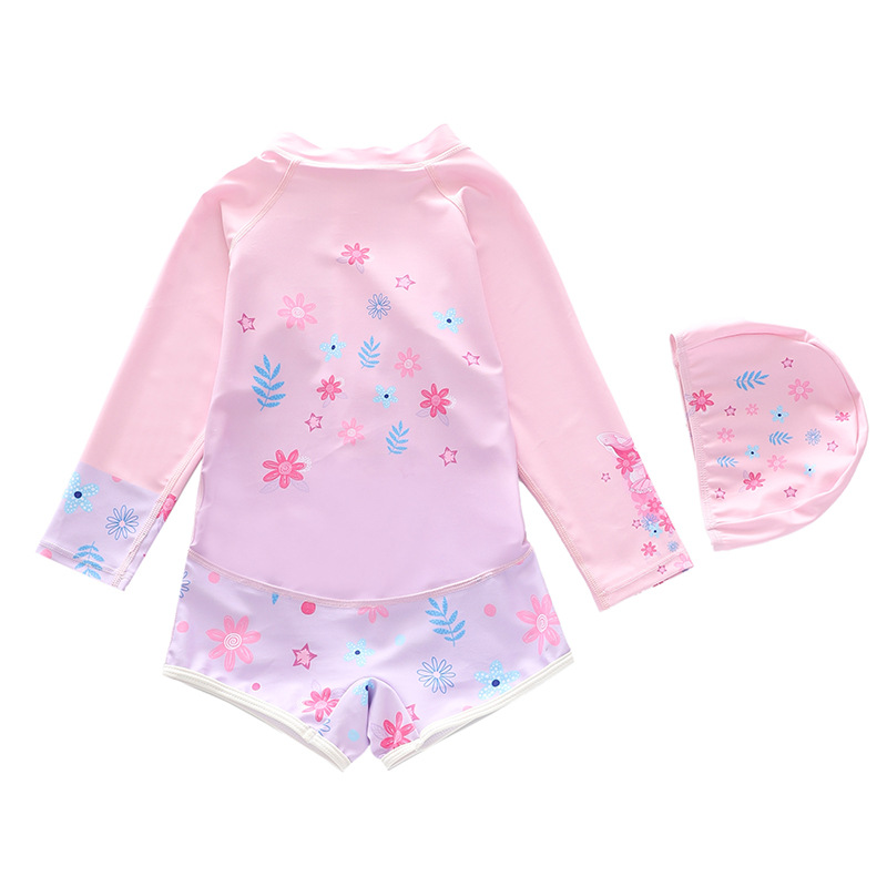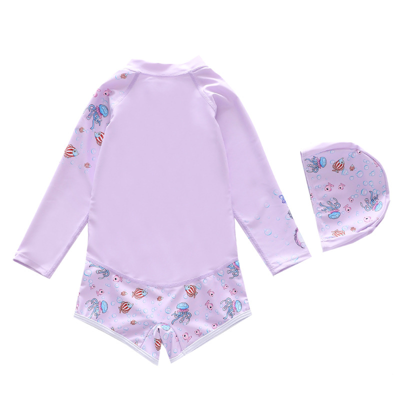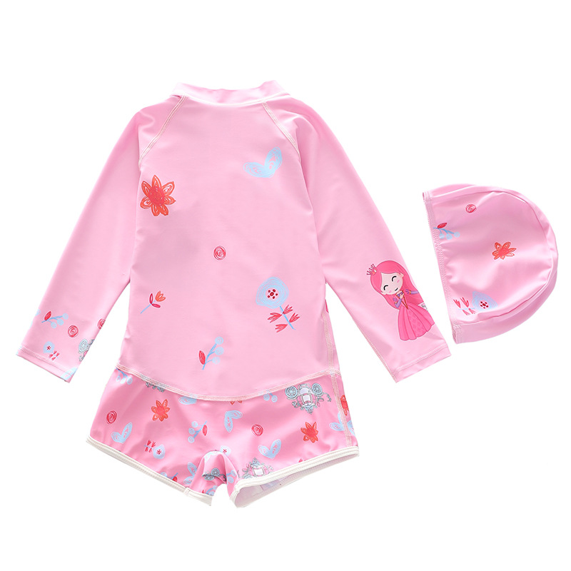 새로운 어린이 수영복 여자의 원피스 만화 자외선 차단제 긴 소매 수영복 한국 공주 작은 중간 크기의 어린이 여아 수영복