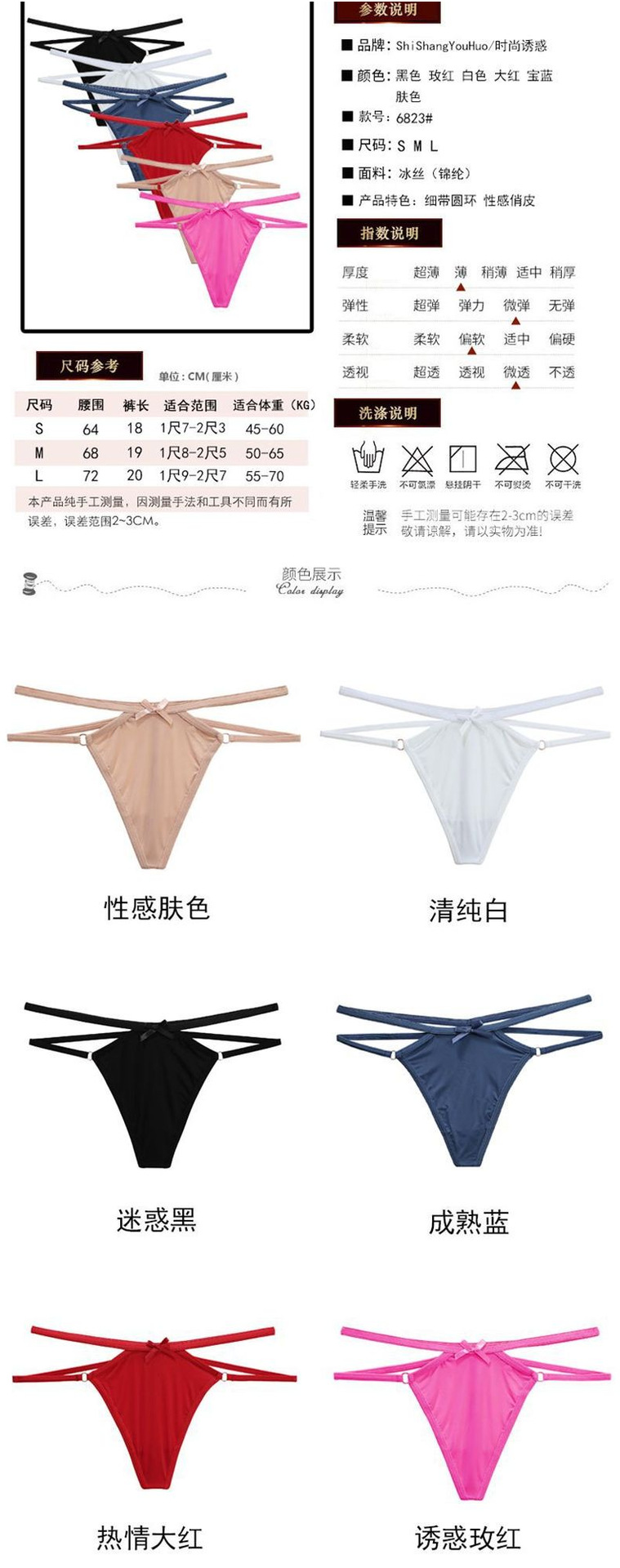 대외 무역 플러스 사이즈 비키니 끈 여성용 아이스 실크 심리스 로우 웨이스트 여성용 T 팬츠 섹시 T 팬츠 6823스토어 가기