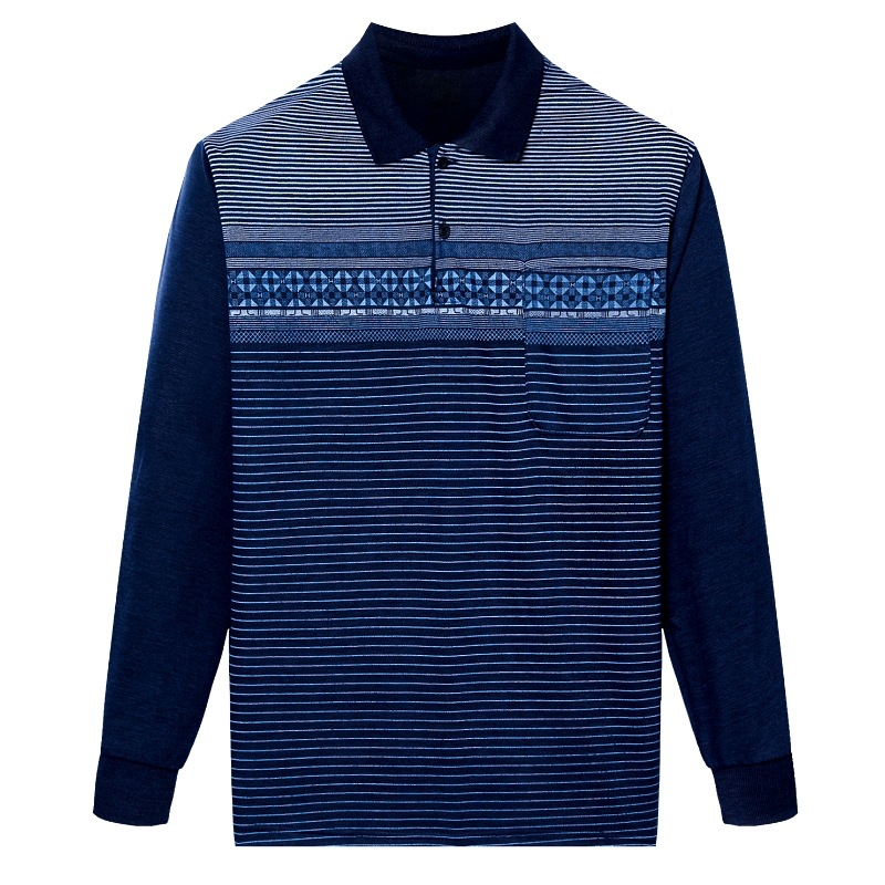 봄 신상 남성 캐주얼 긴팔 탑 면 중년 남성 스트라이프 슬림핏 라젤 베이스 셔츠 티셔츠