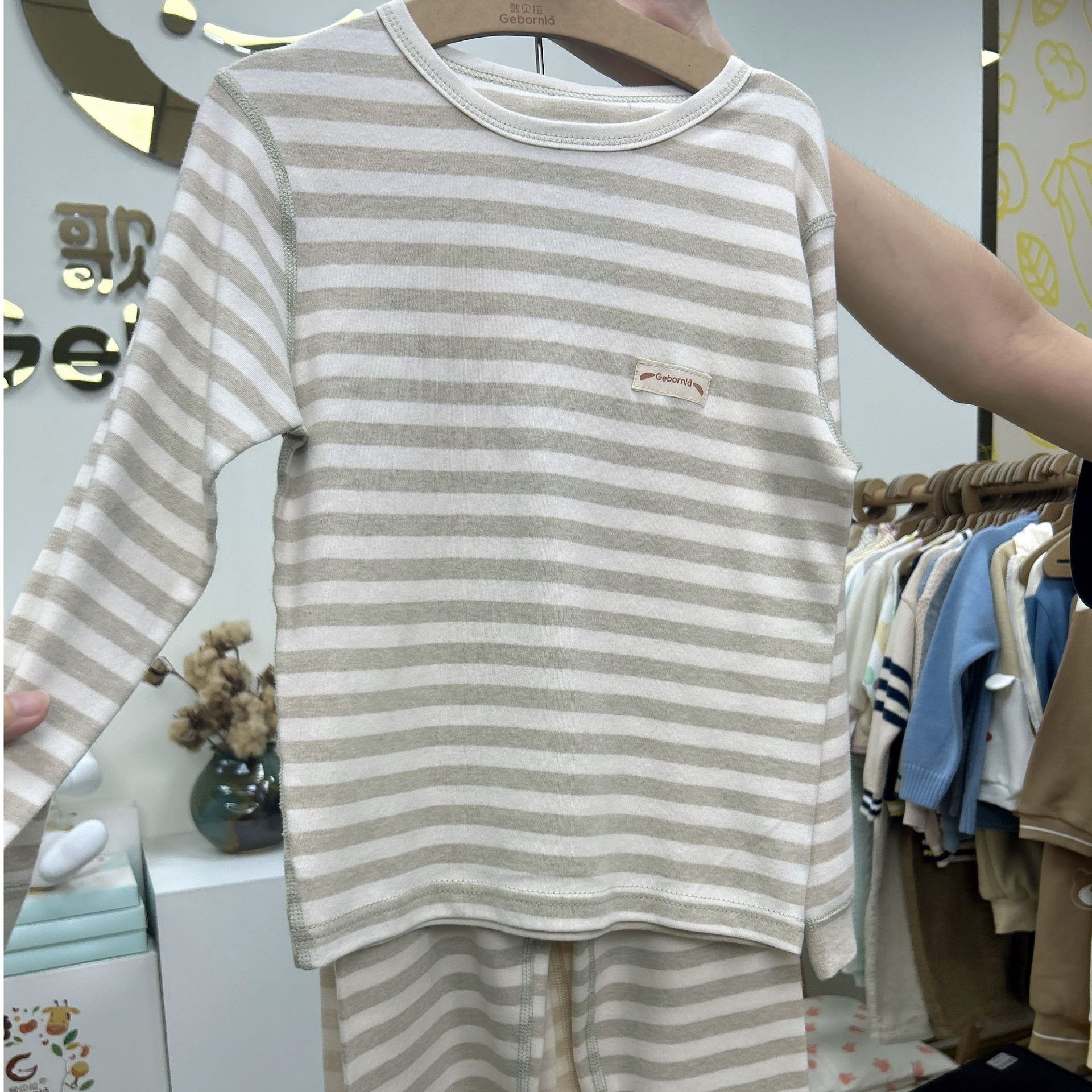 【文案】歌贝拉条纹秋衣秋裤套装,无骨缝制。精选彩棉面料。贴身打底好内衣,宝宝春秋冬不可缺的贴身衣物。