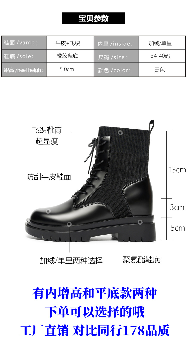 내부 키높이 마틴 부츠 여성용 2025년 신상 봄 가을 단화 영국 스타일 두꺼운 밑창 다용도 봄 단화