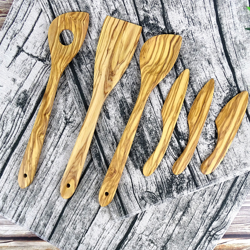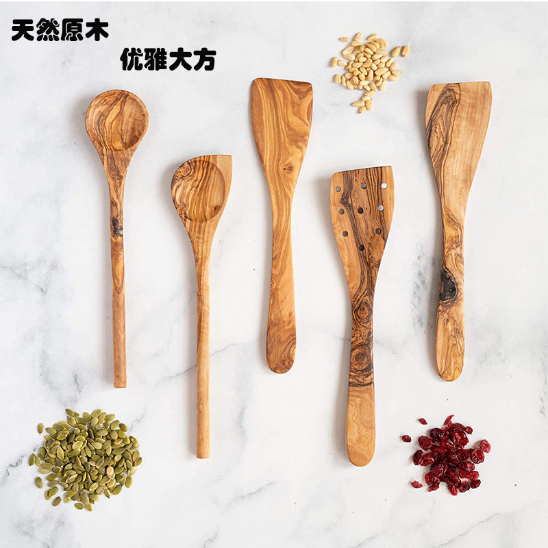 • 올리브 나무 숟가락 삽 5 조각 세트