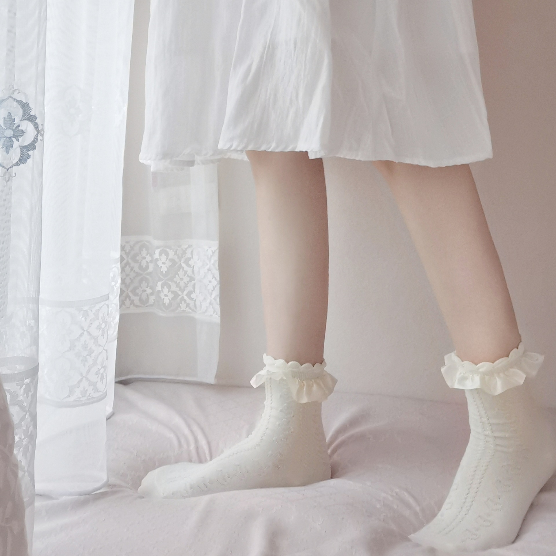 일본식 화이트 버블 레이스 중간 길이 양말 중공 러브 자카드 면 양말 여성용 모든 매치 jk 유니폼 소녀 양말스토어 가기