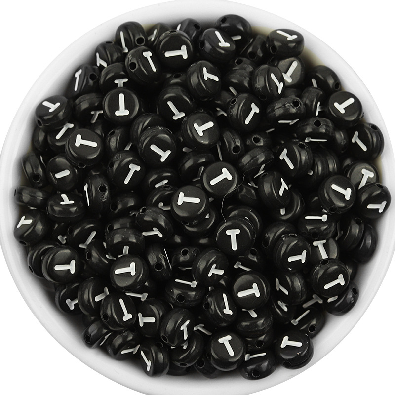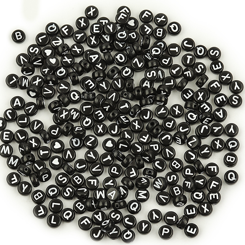 아크릴 플랫 라운드 레터 구슬 블랙 하단 화이트 단일 영어 편지 구슬 DIY 팔찌 구슬 보석 액세서리스토어 가기