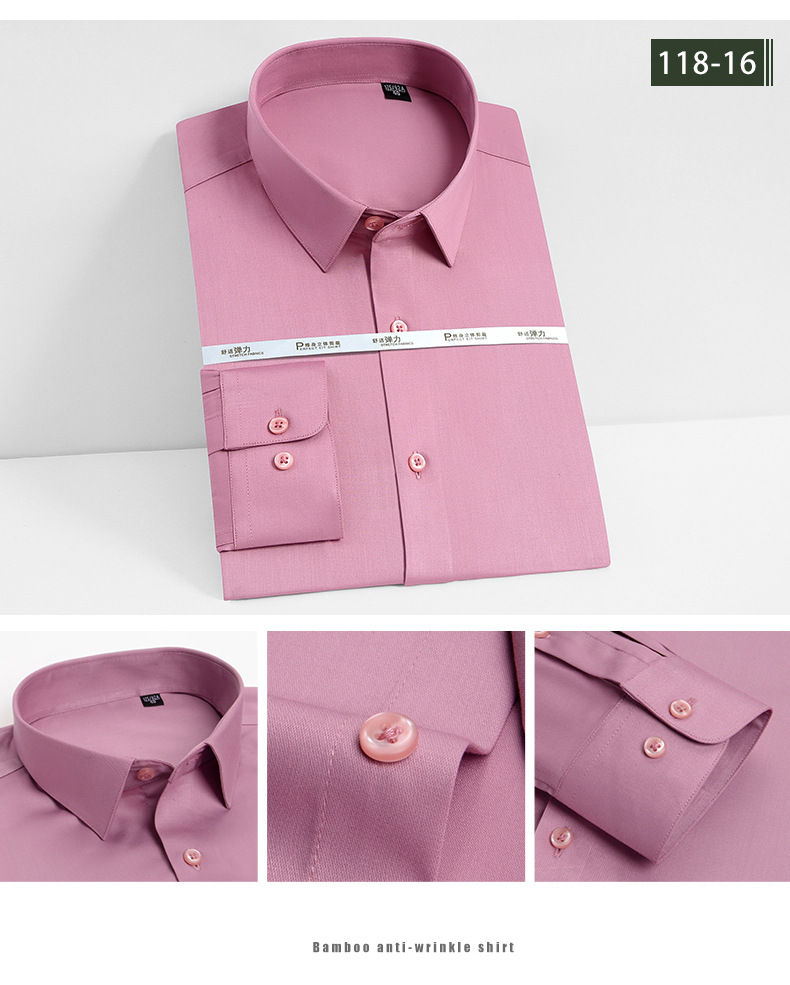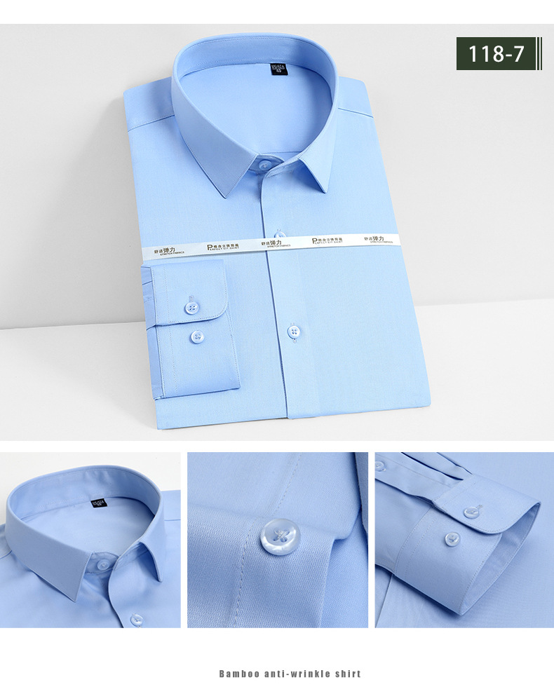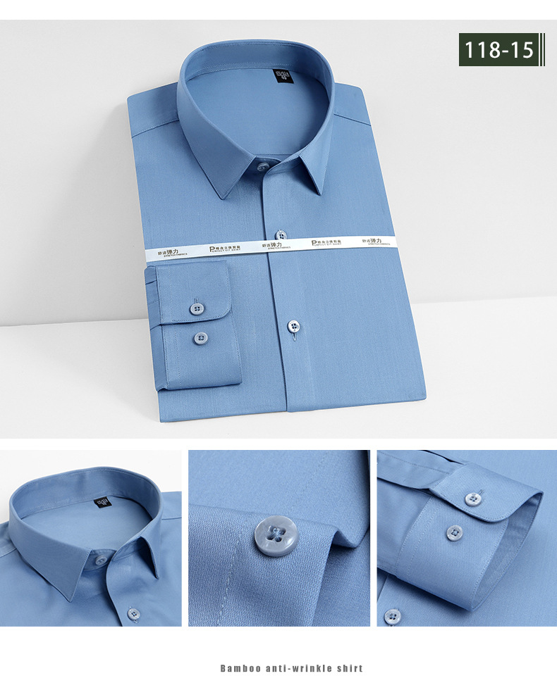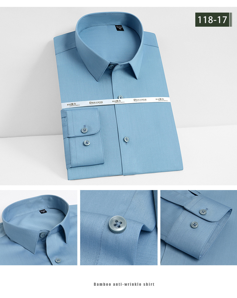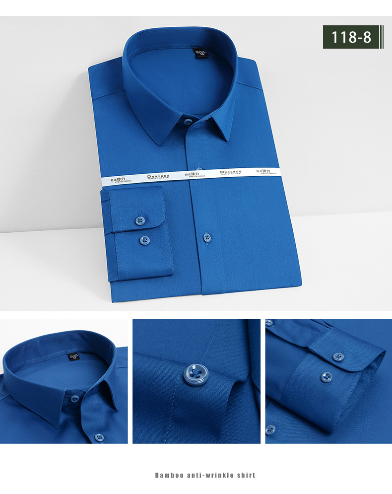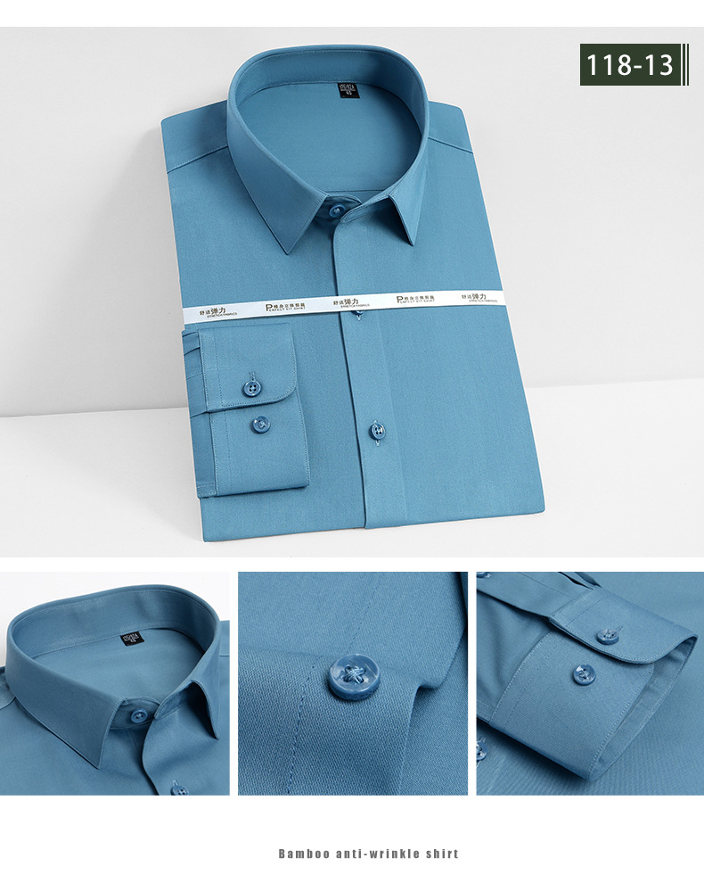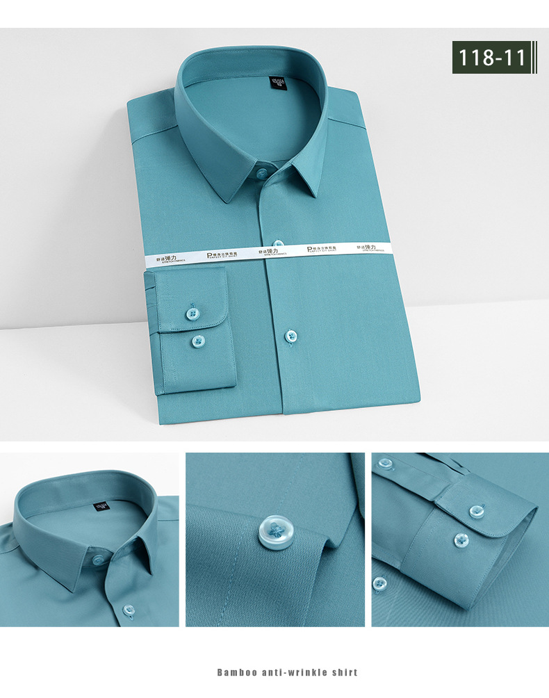 [대나무 섬유 비 다림질] 가벼운 럭셔리 원활한 긴 소매 셔츠 2021 가을 새로운 비즈니스 단색 원피스 셔츠