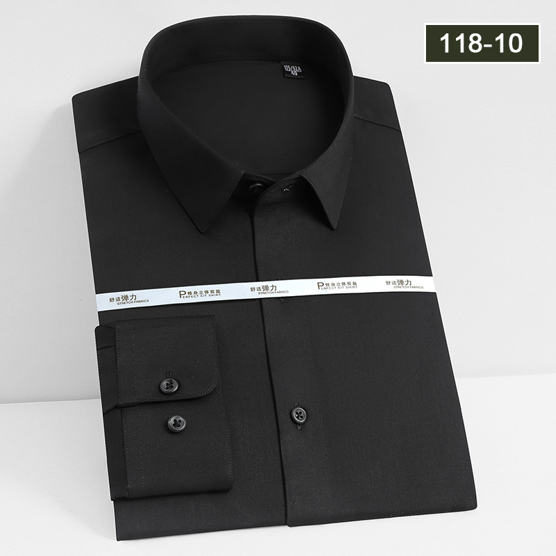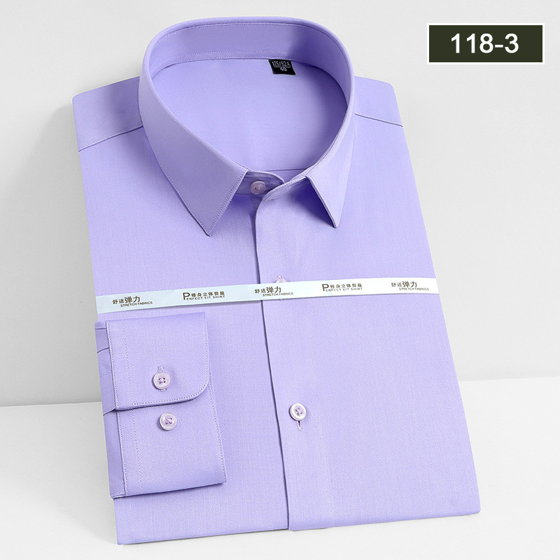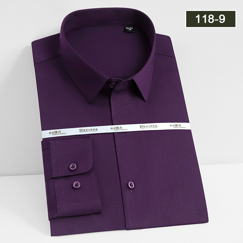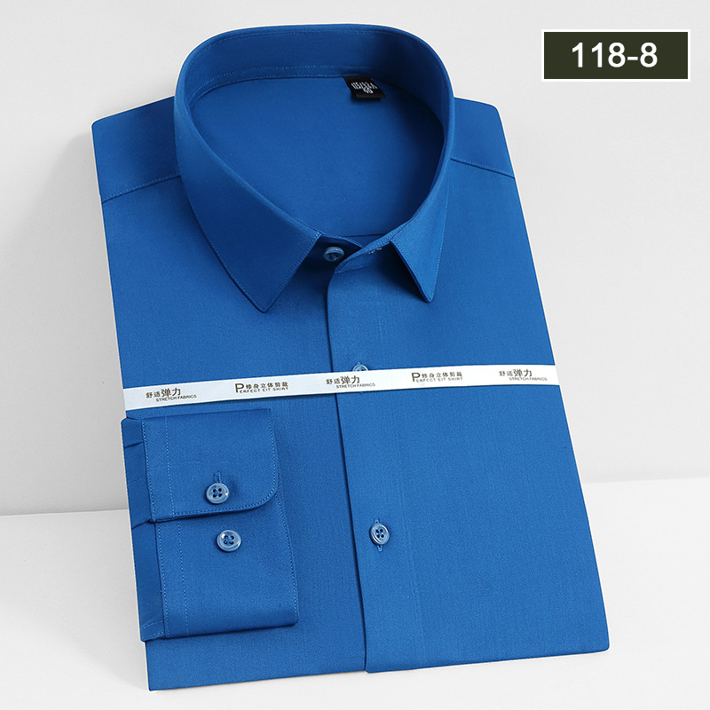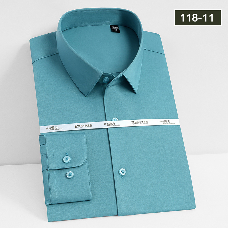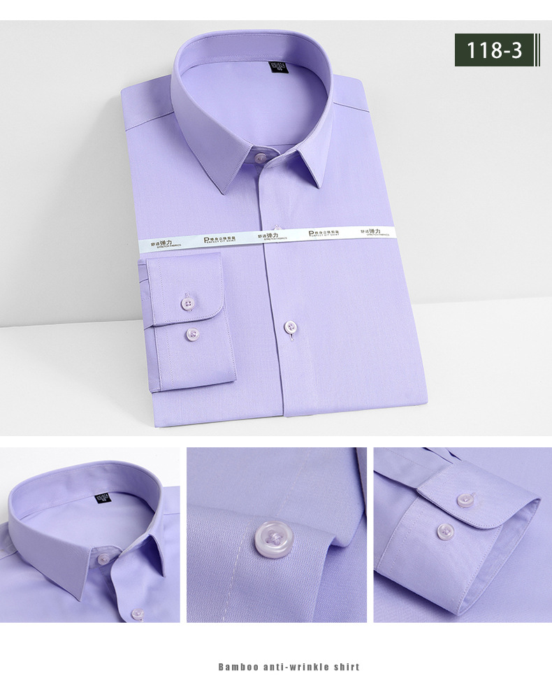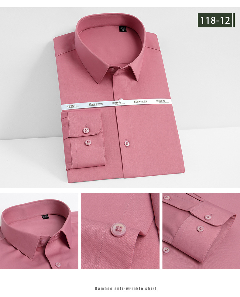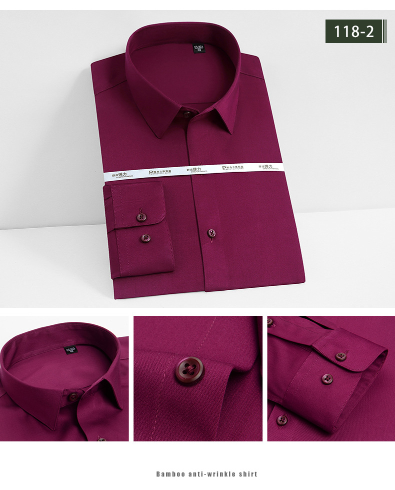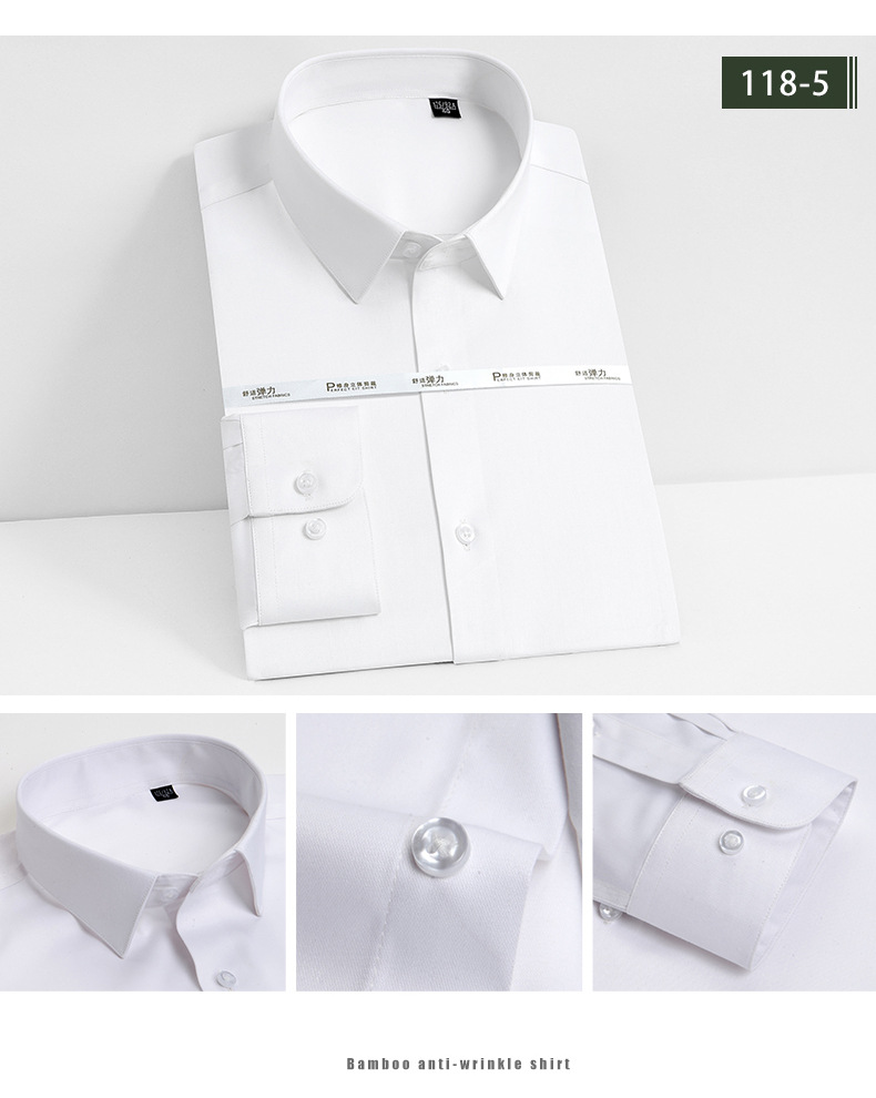 [대나무 섬유 비 다림질] 가벼운 럭셔리 원활한 긴 소매 셔츠 2021 가을 새로운 비즈니스 단색 원피스 셔츠