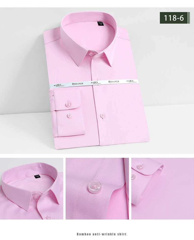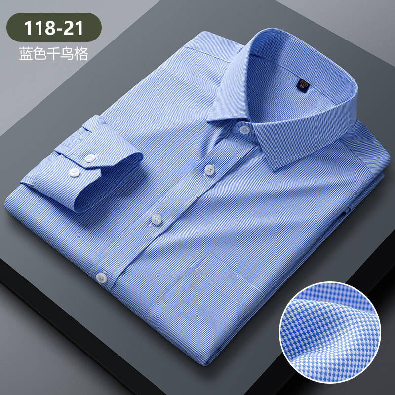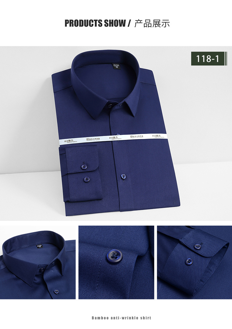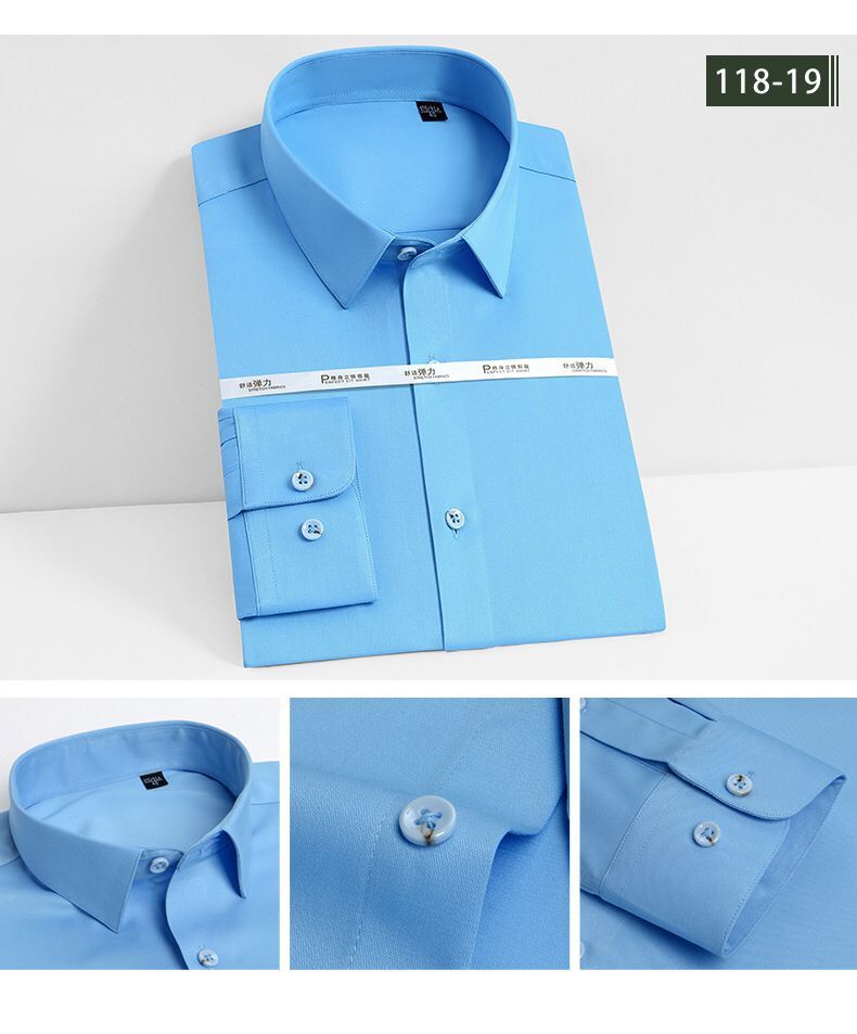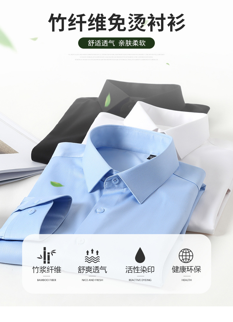 [대나무 섬유 비 다림질] 가벼운 럭셔리 원활한 긴 소매 셔츠 2021 가을 새로운 비즈니스 단색 원피스 셔츠스토어 가기