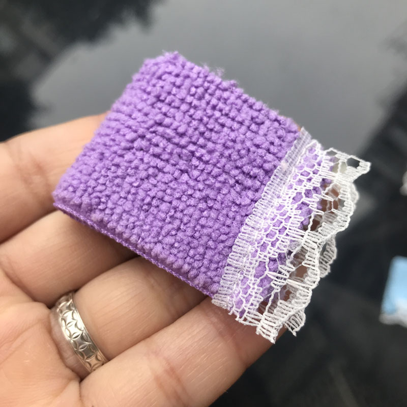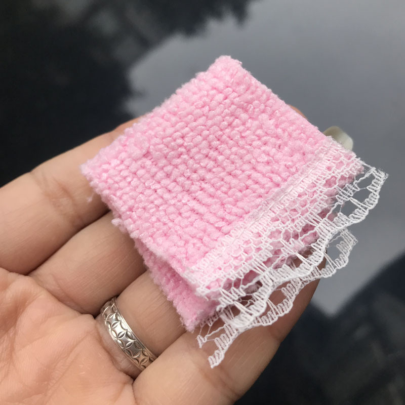 手工制作的小毛巾,带蕾丝花边,搭配浴室场景更有生气~