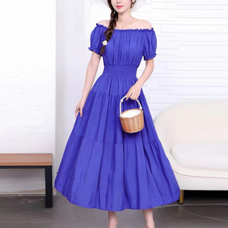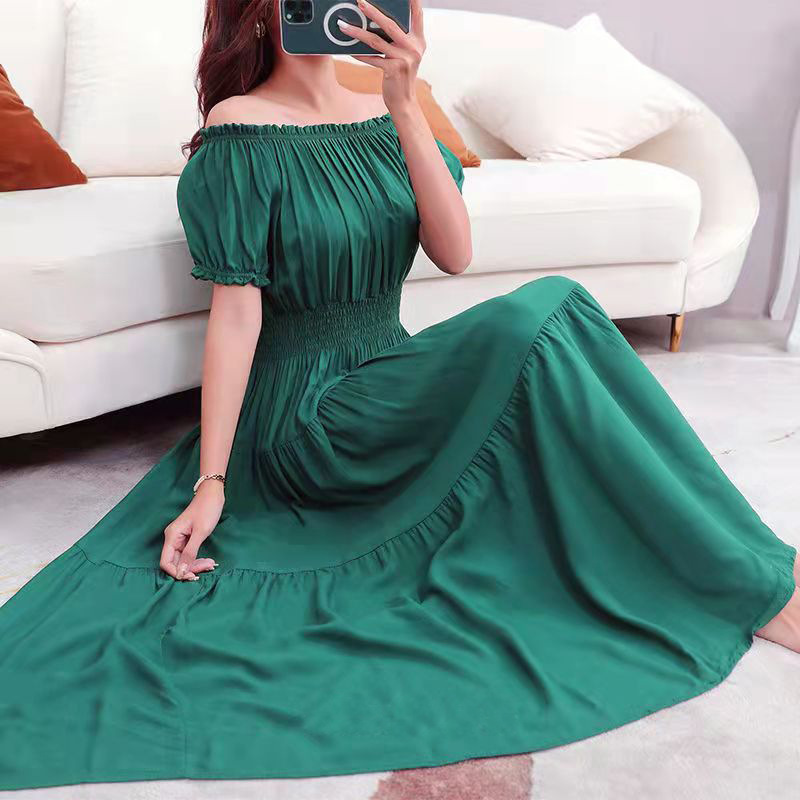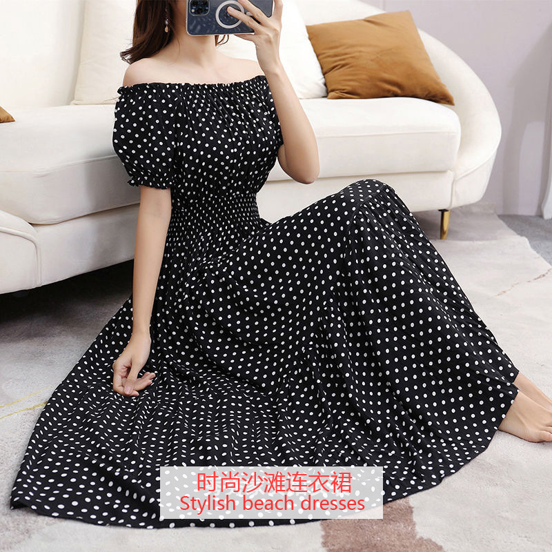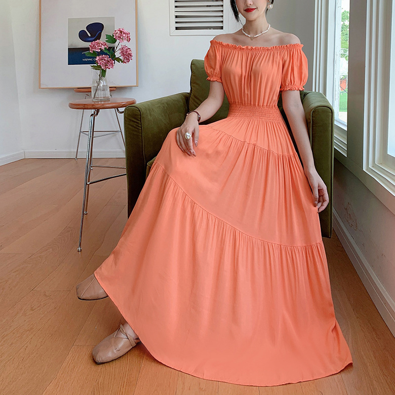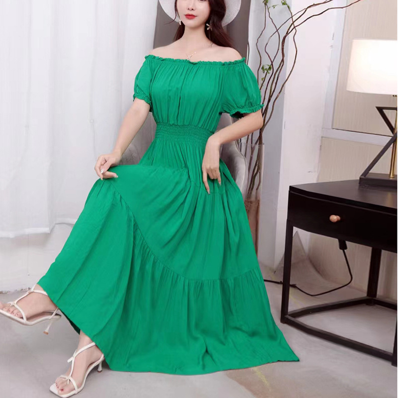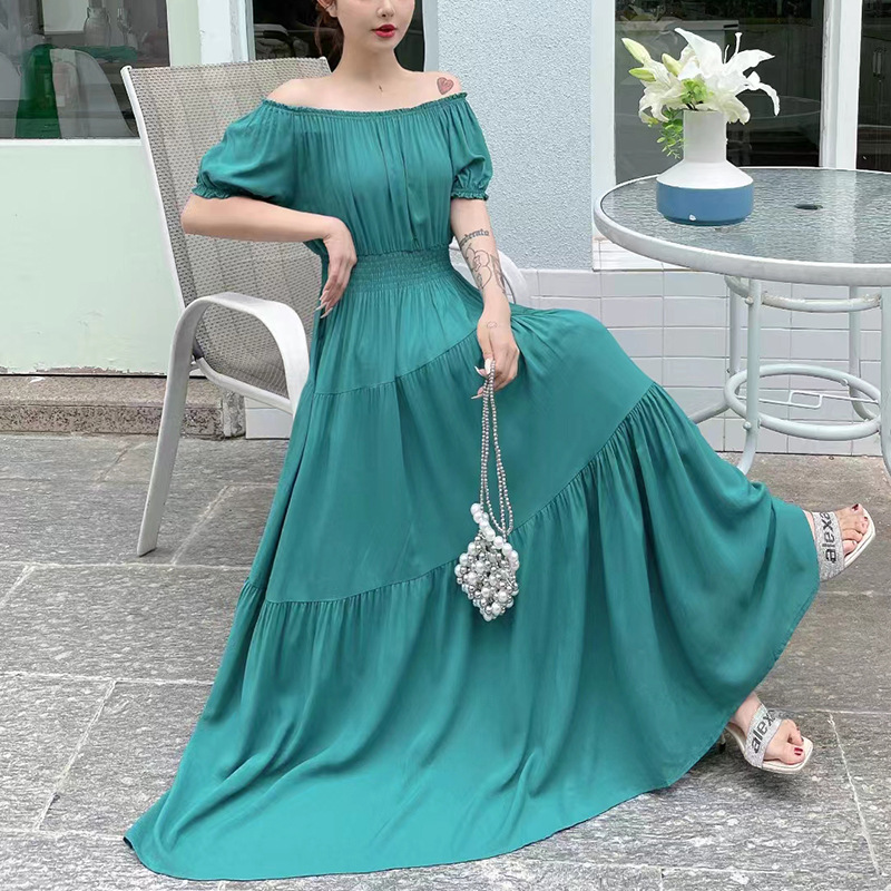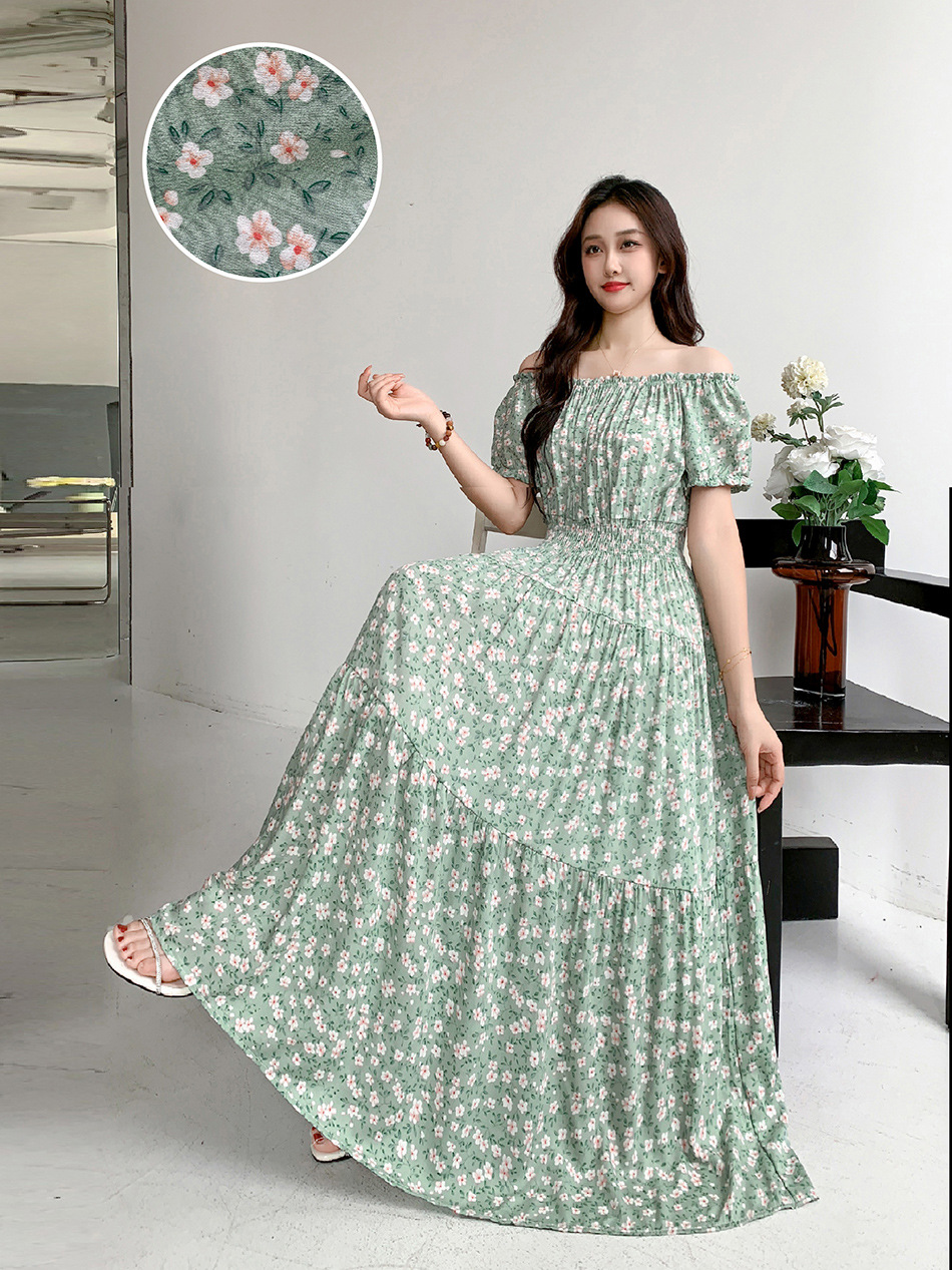 코튼 실크 꽃 어깨 원피스 민족 스타일 느슨한 허리 비치 휴가 스커트 보헤미안 맥시