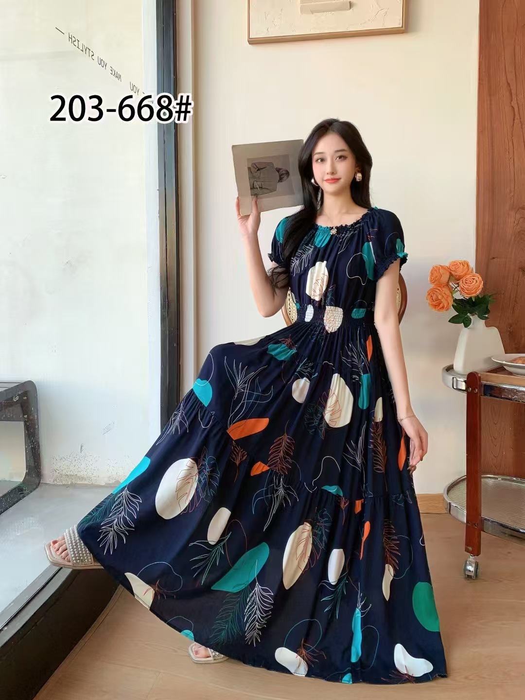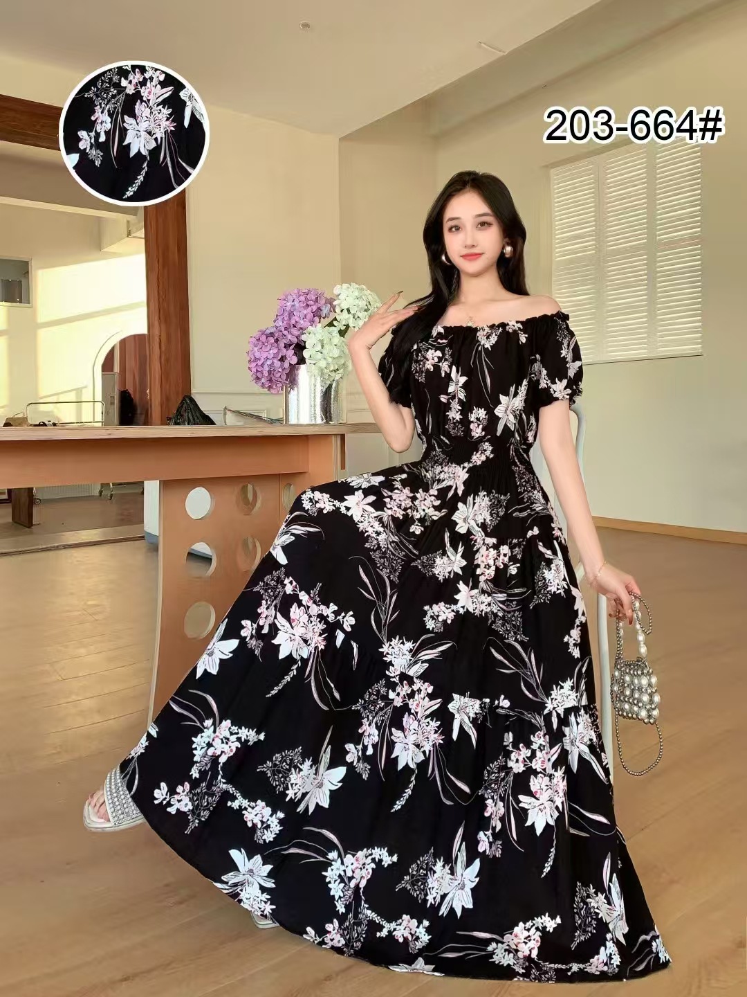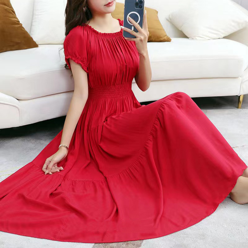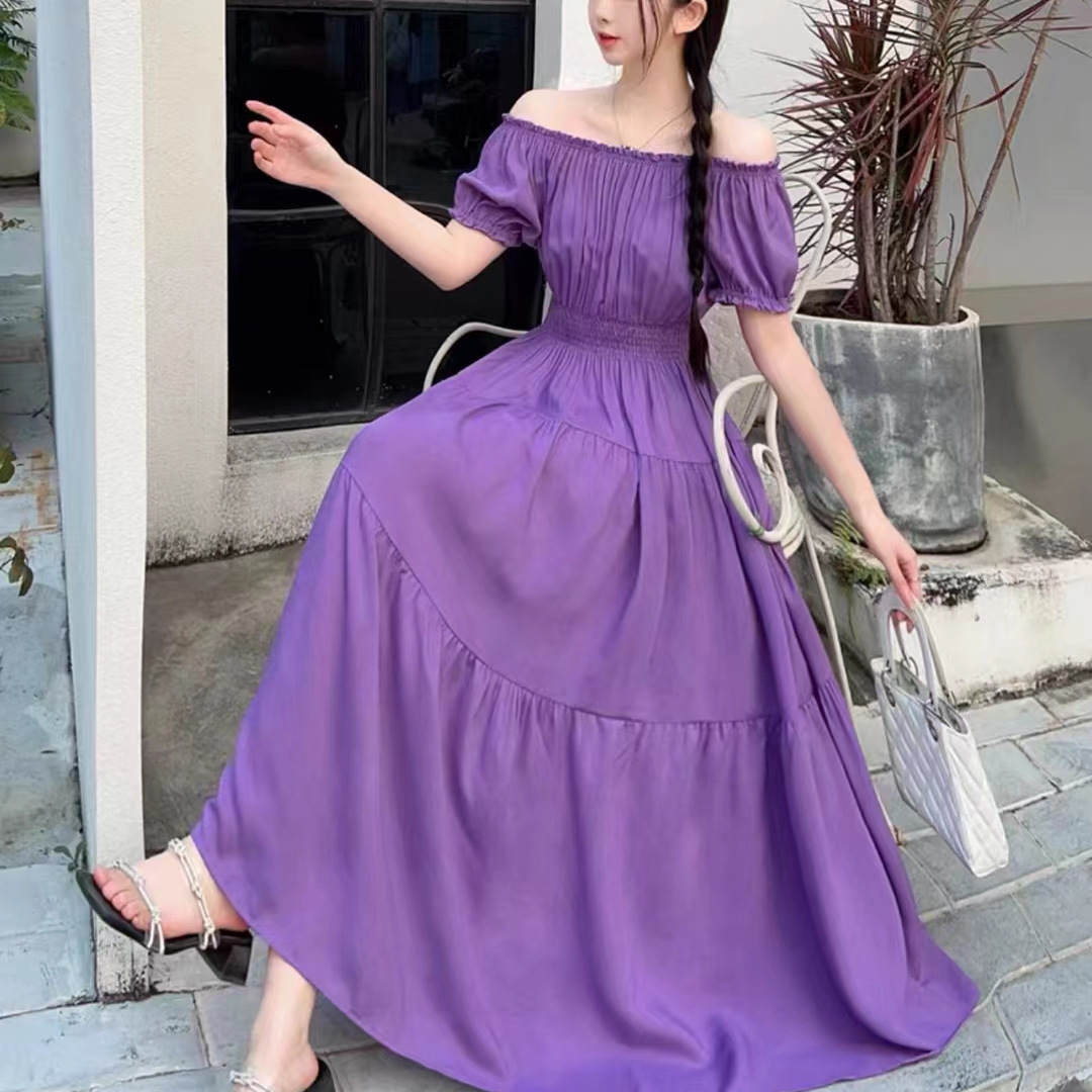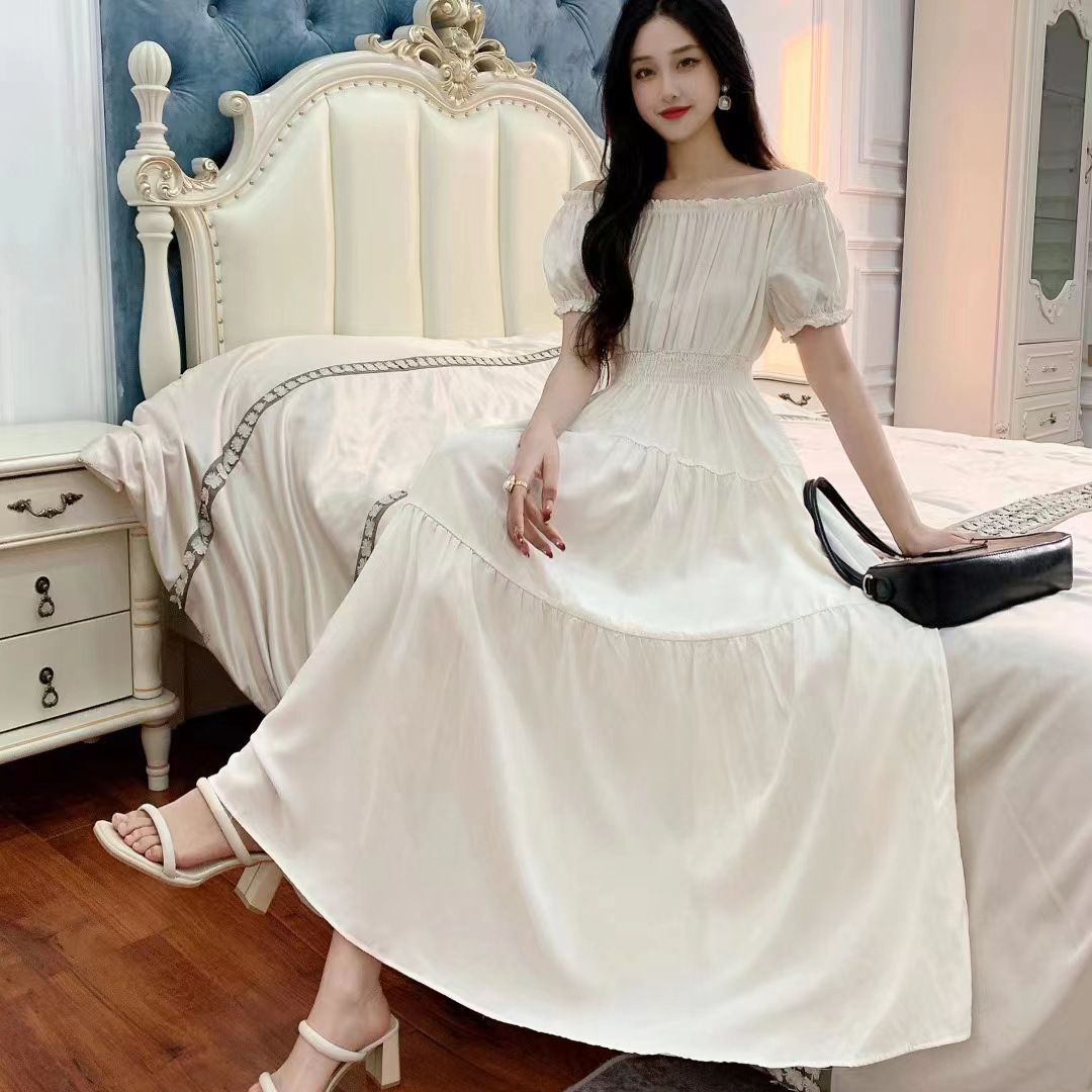 코튼 실크 꽃 어깨 원피스 민족 스타일 느슨한 허리 비치 휴가 스커트 보헤미안 맥시
