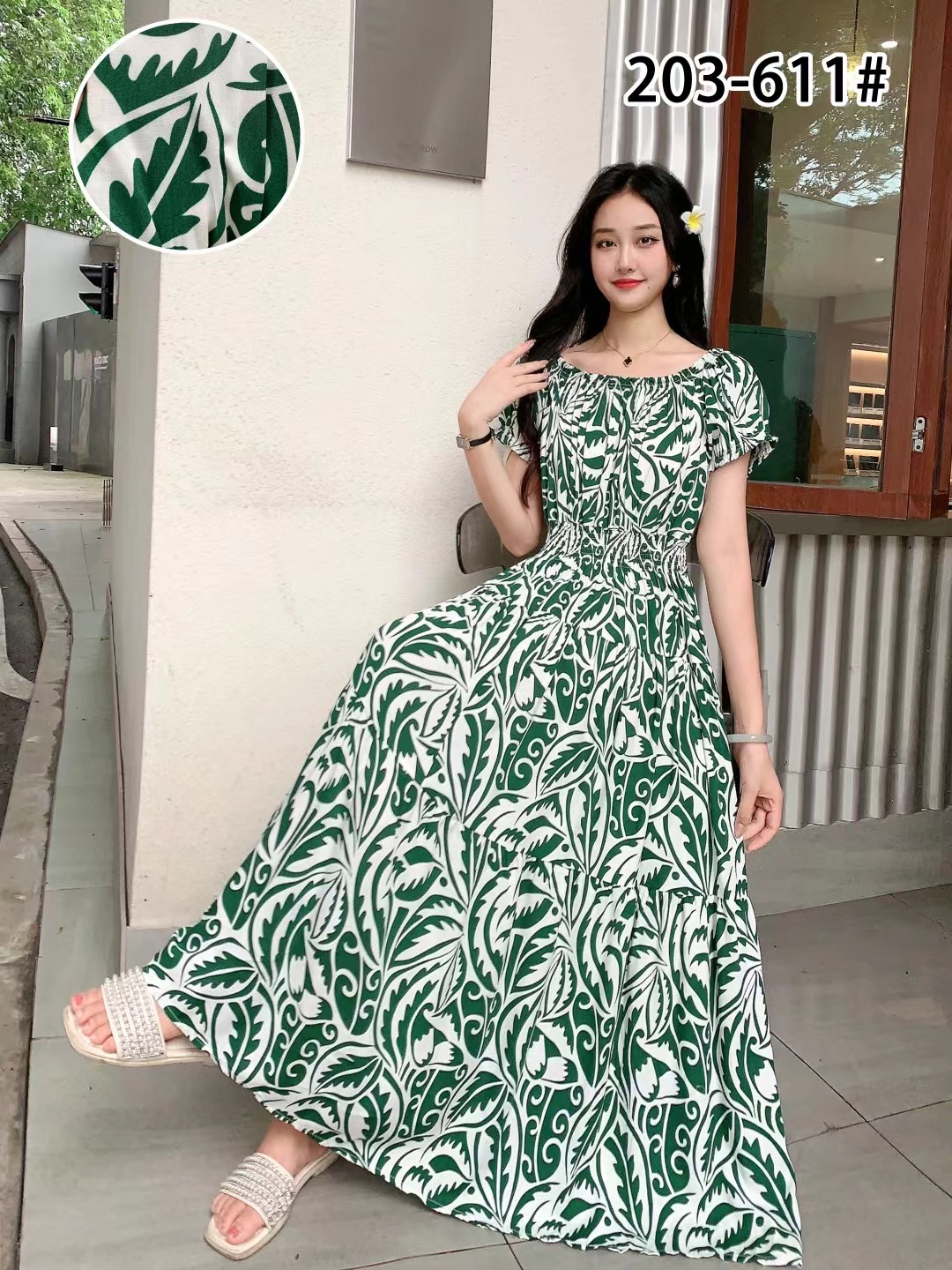코튼 실크 꽃 어깨 원피스 민족 스타일 느슨한 허리 비치 휴가 스커트 보헤미안 맥시스토어 가기