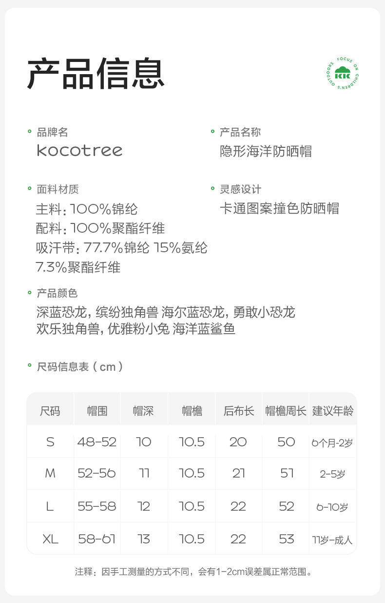 • S 사이즈: 권장 머리 둘레 48-50CM, 6개월-2세