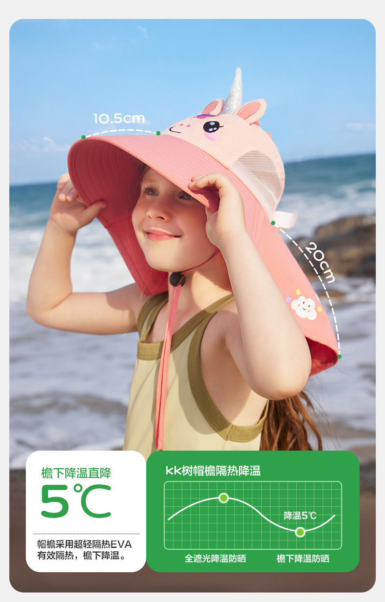 KK 트리 어린이 선 스크린 모자 UV 보호 아기 차양 태양 모자 소년과 소녀 여름 해변 모자 큰 브림