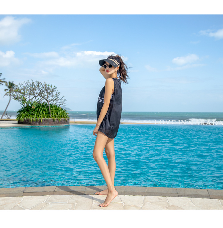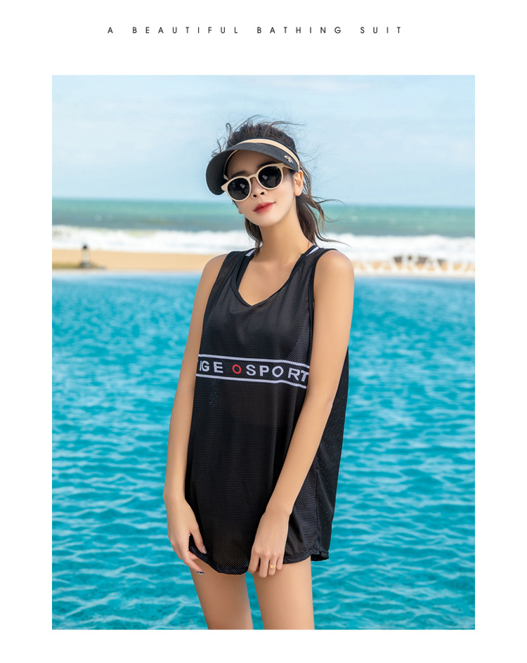 수영복 여성용 스플릿 비키니 쓰리피스 슬림 배꼽 덮개 조끼 블라우스 보수적 인 학생 스포츠 온천 수영복