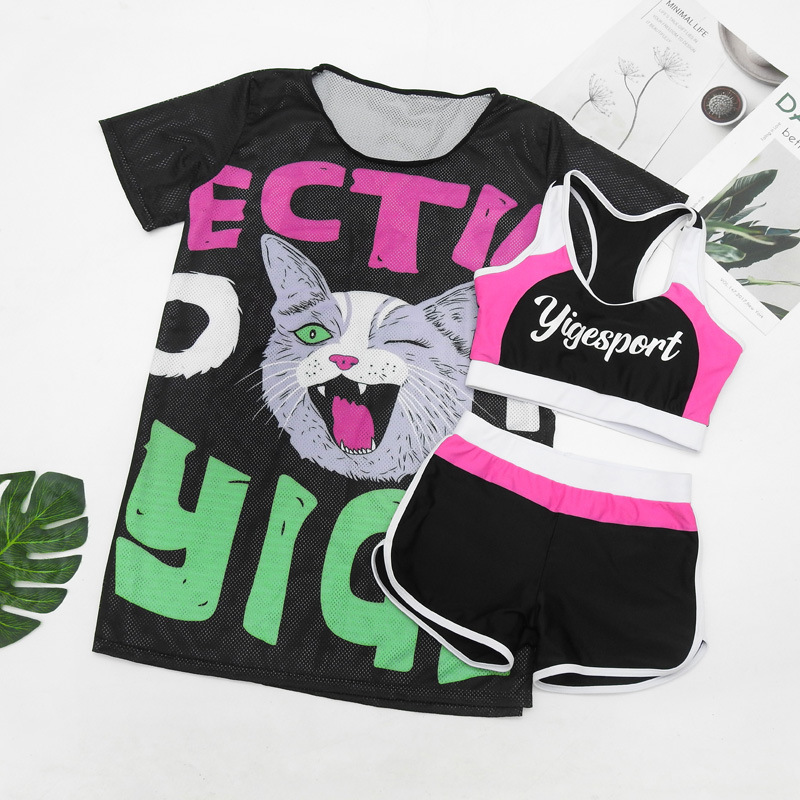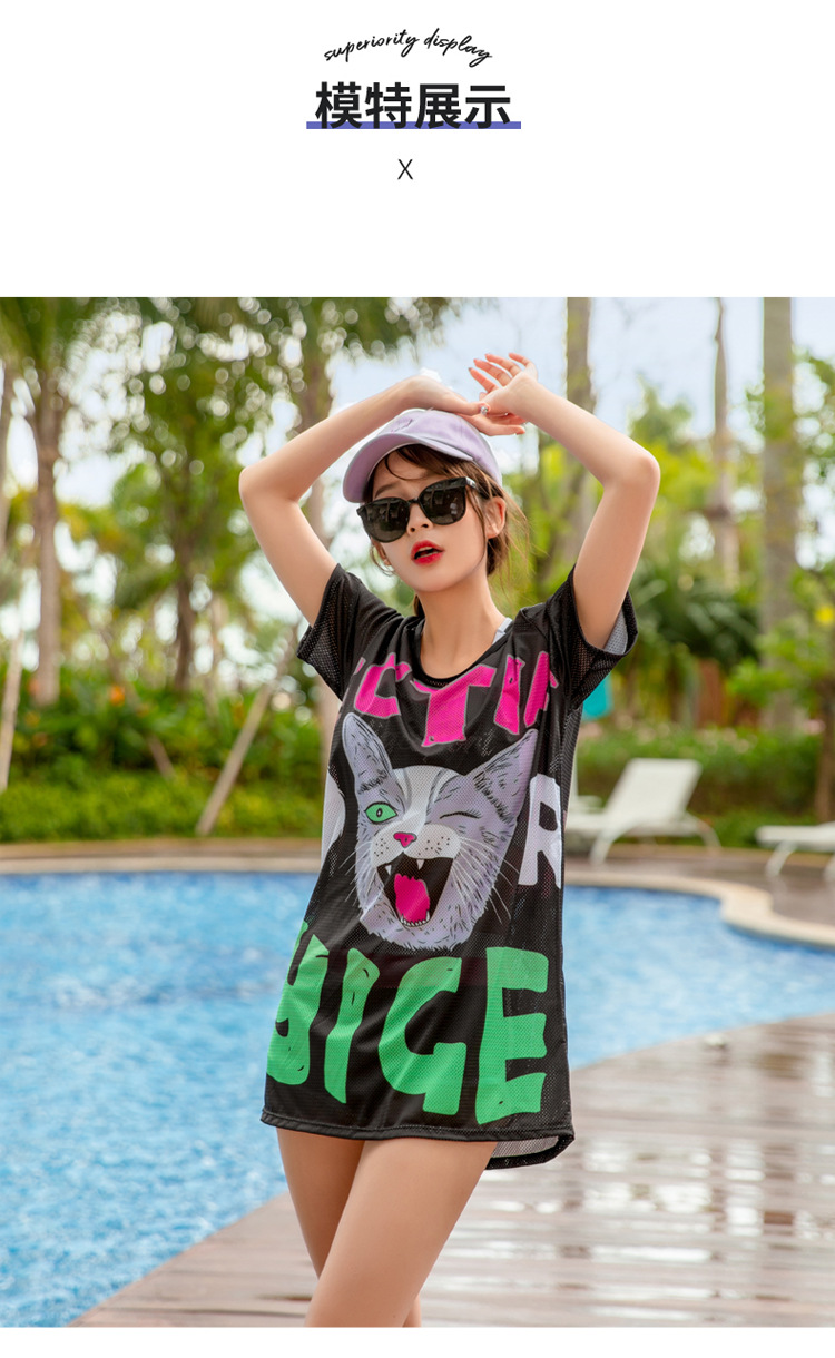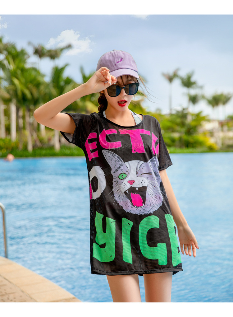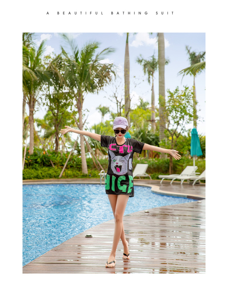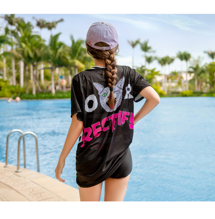수영복 여성용 스플릿 비키니 쓰리피스 세트 슬림 배꼽 커버 고양이 블라우스 보수적 인 학생 스포츠 온천 수영복