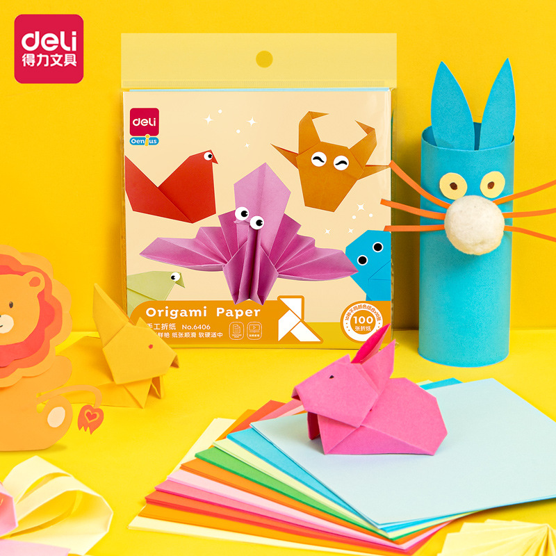 델리 6406 어린이 수제 DIY 종이 접기 만들기 재료 만화 수제 장난감 동물 색종이 유치원스토어 가기