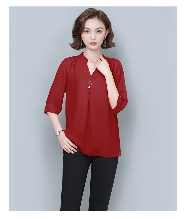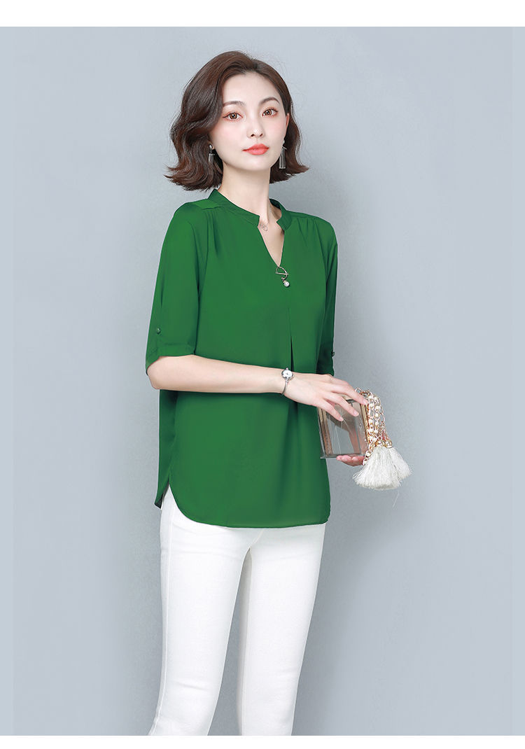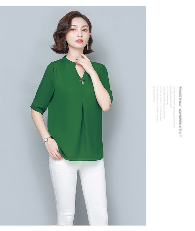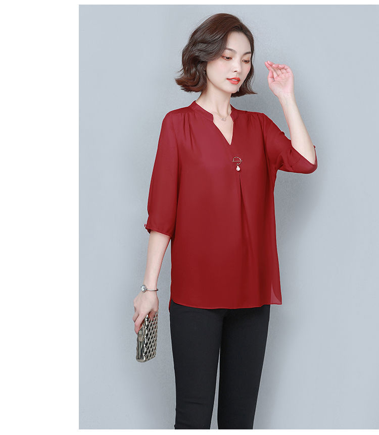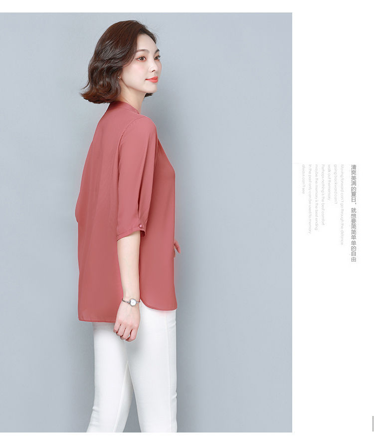 2023 새로운 여름 여성 대형 느슨한 중간 길이 기질 셔츠 중년 어머니 여름 중간 소매 티셔츠