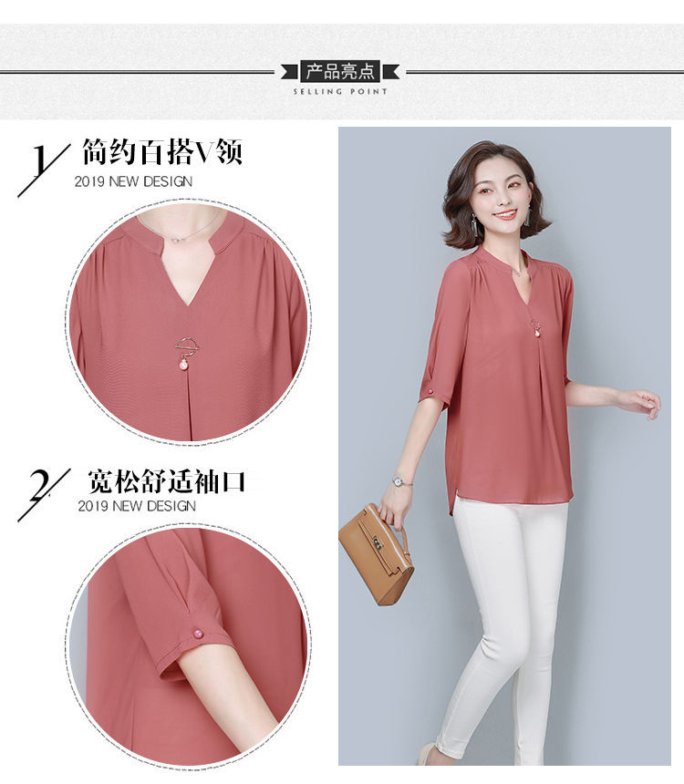 2023 새로운 여름 여성 대형 느슨한 중간 길이 기질 셔츠 중년 어머니 여름 중간 소매 티셔츠스토어 가기