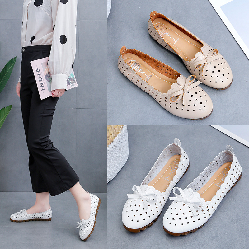 2023 봄과 여름 한국식 활 중공 신발 여성용 라운드 토 플랫 슈즈 여성 신발 얕은 입 캐주얼 작업 신발스토어 가기