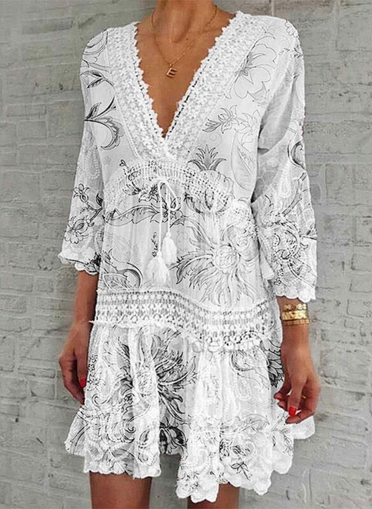 아마존 2024 새로운 원피스 V 넥 인쇄 섹시한 원피스 빈 섹시한 원피스 휴가스토어 가기
