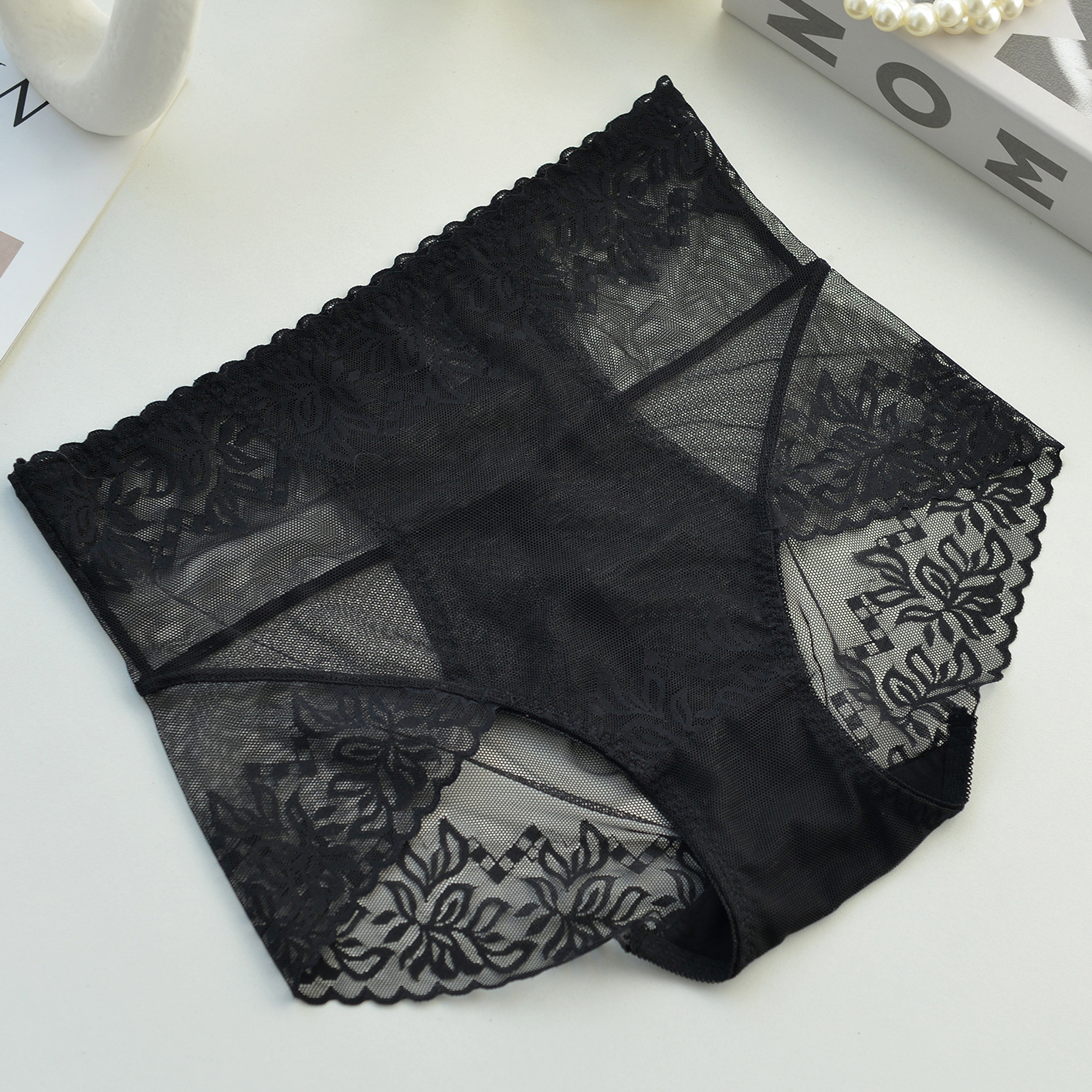 하이 웨이스트 레이스 속옷 여성용 복부 엉덩이 리프팅 얇은 통기성 팬티 섹시한 레이스 메쉬 면 가랑이 8570