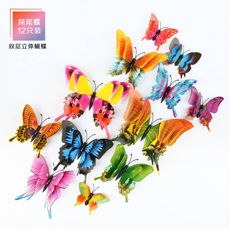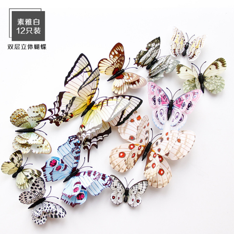 대외 무역 3d 시뮬레이션 플라스틱 나비 벽 스티커 거실 벽 장식 침실 방 스티커 창조적 인 냉장고 스티커