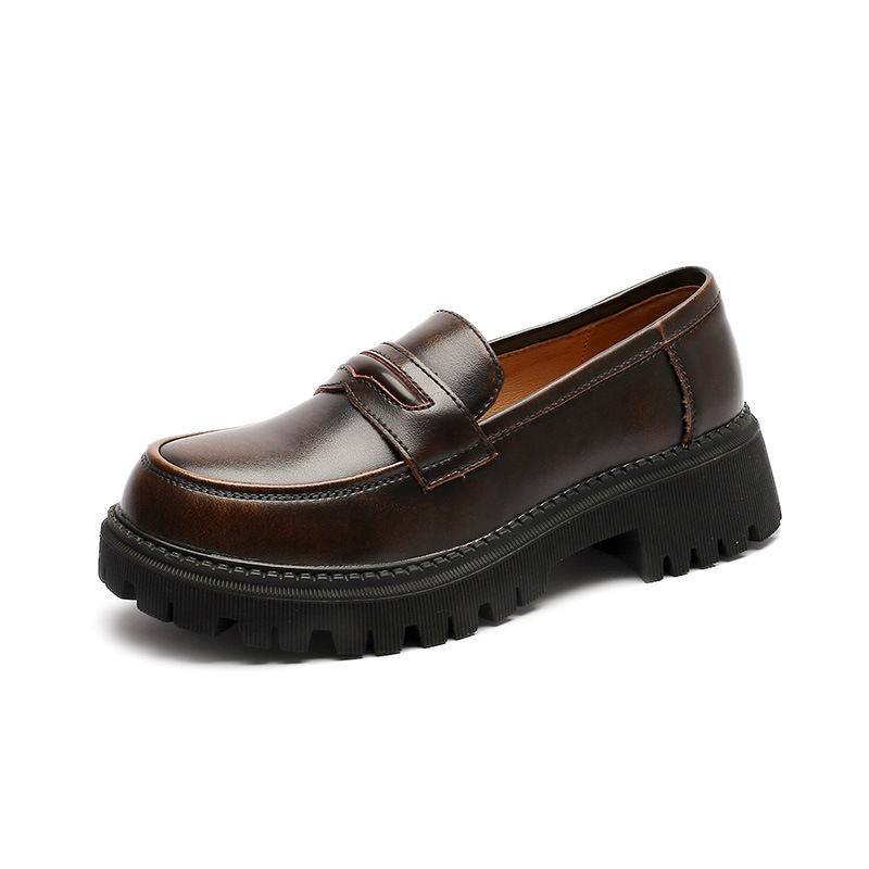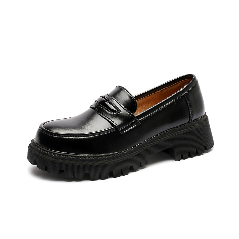 Meizu Power 2021 새로운 작은 가죽 신발 미들 힐 학생 일본 대학 스타일 미들 힐 부드러운 바닥 jk 유니폼 신발스토어 가기