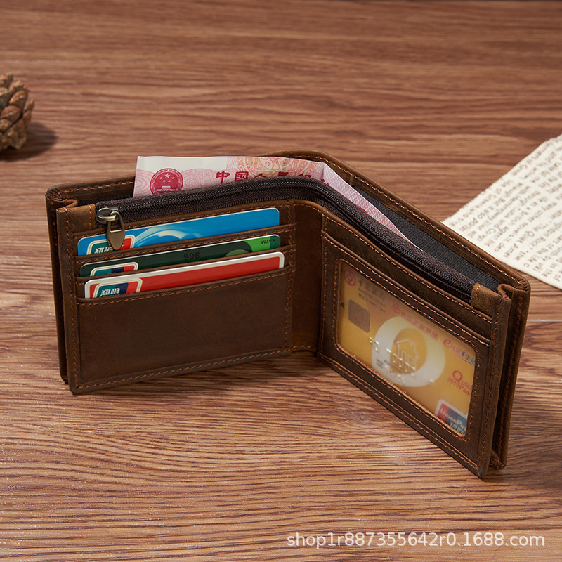 남성용 지갑 대외 무역 Crazy Horse 1 층 소 가죽 항자성 확대 지퍼 동전 가죽 지갑 공장 도매스토어 가기
