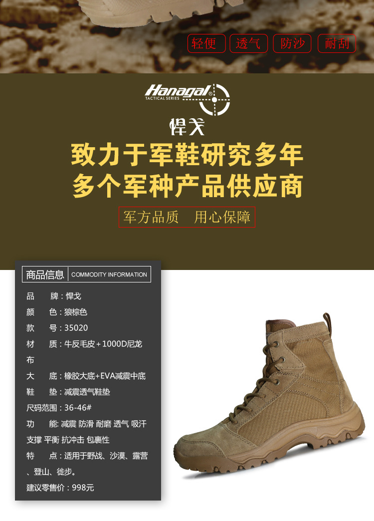 험비 35020 사계절 미드 로우 안티 모피 경량 남성용 사막 하이킹 부츠 훈련 군용 팬 부츠 카고 부츠