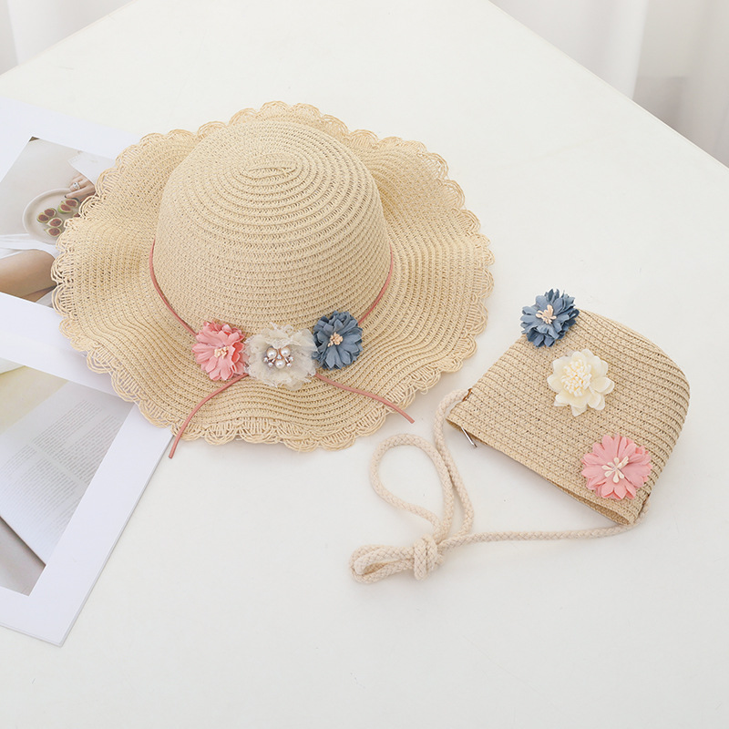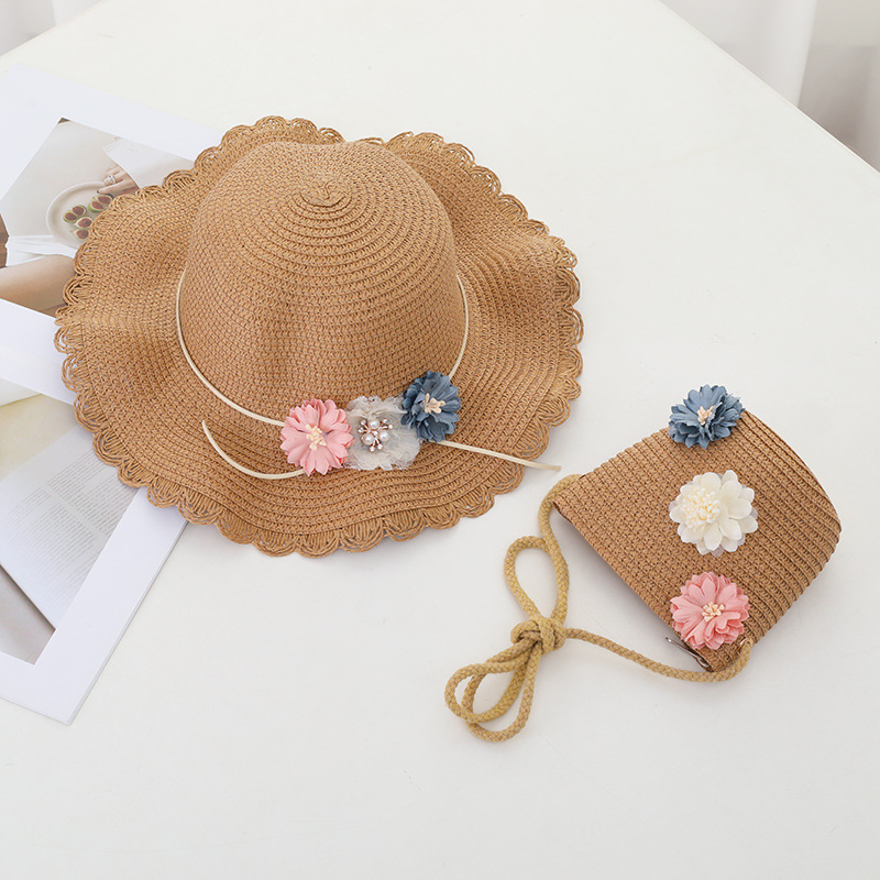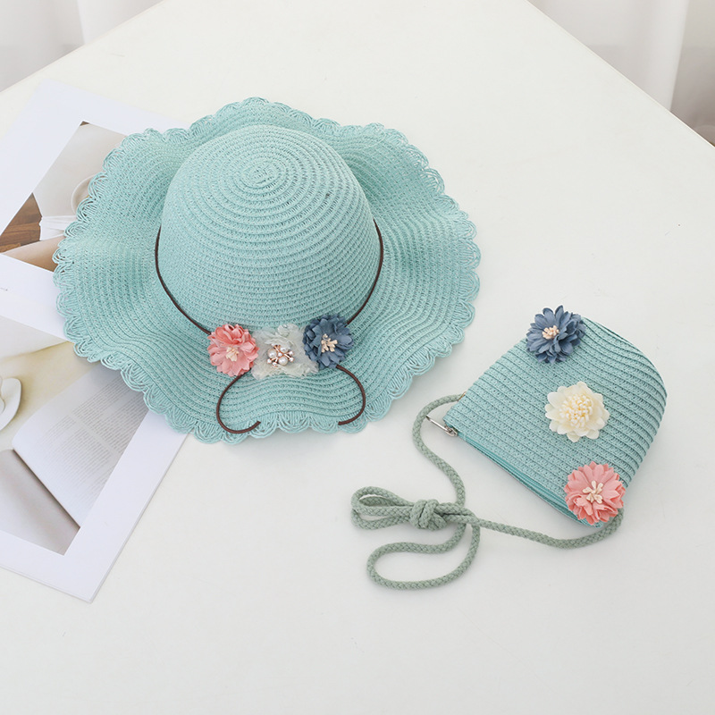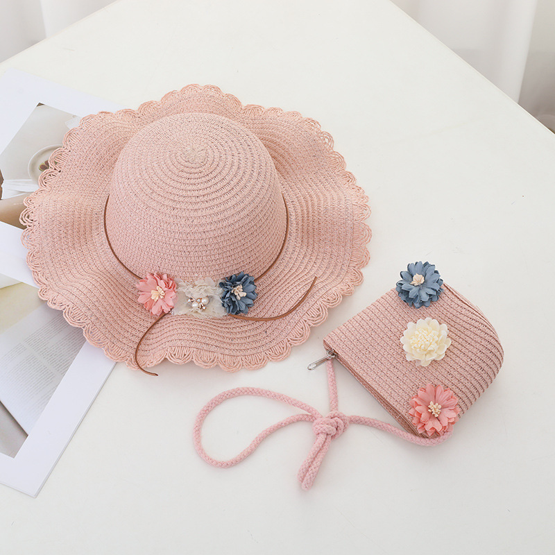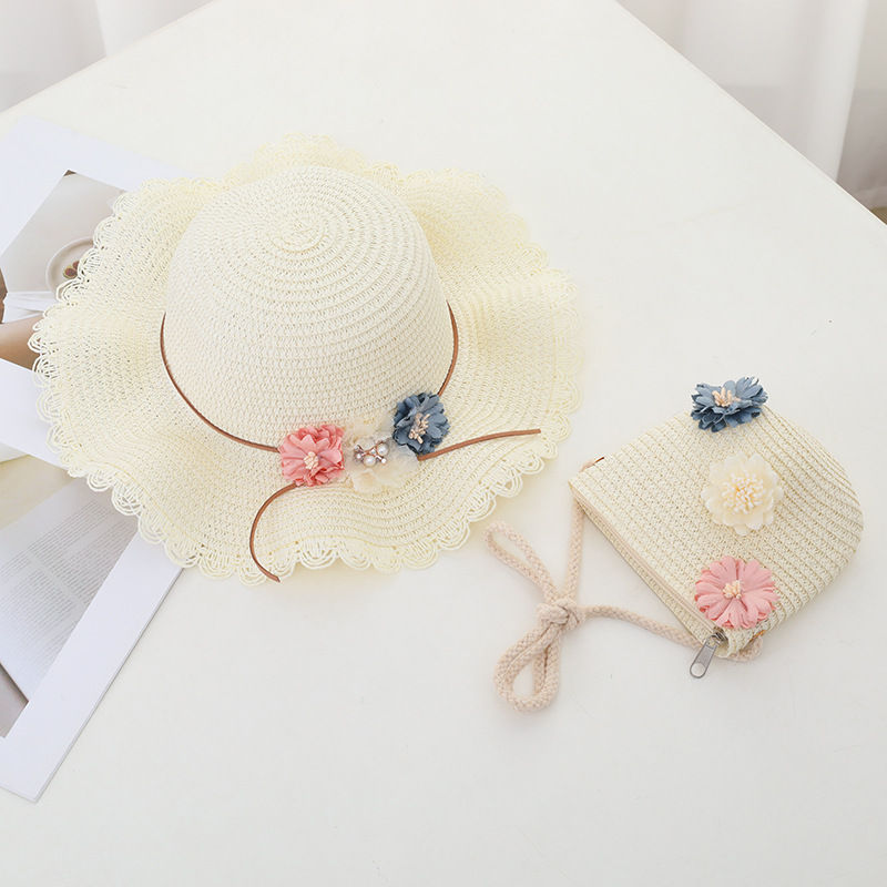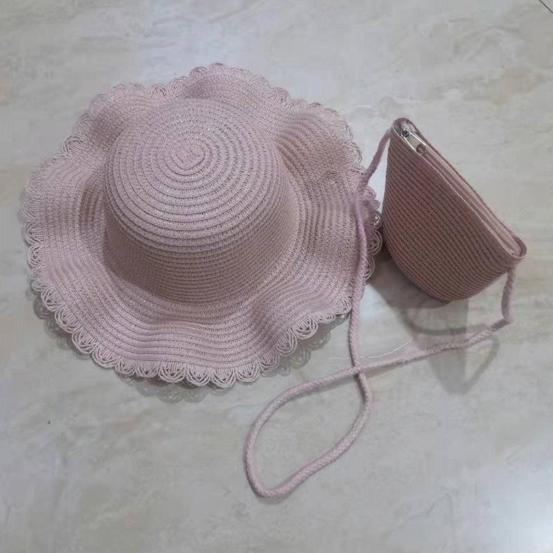 작은 신선한 가방 어린이 태양 모자 여아 여름 비치 모자 물결 모양의 밀짚 모자 차양 모자 어린이 멋진 모자