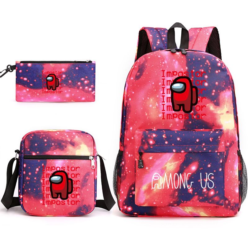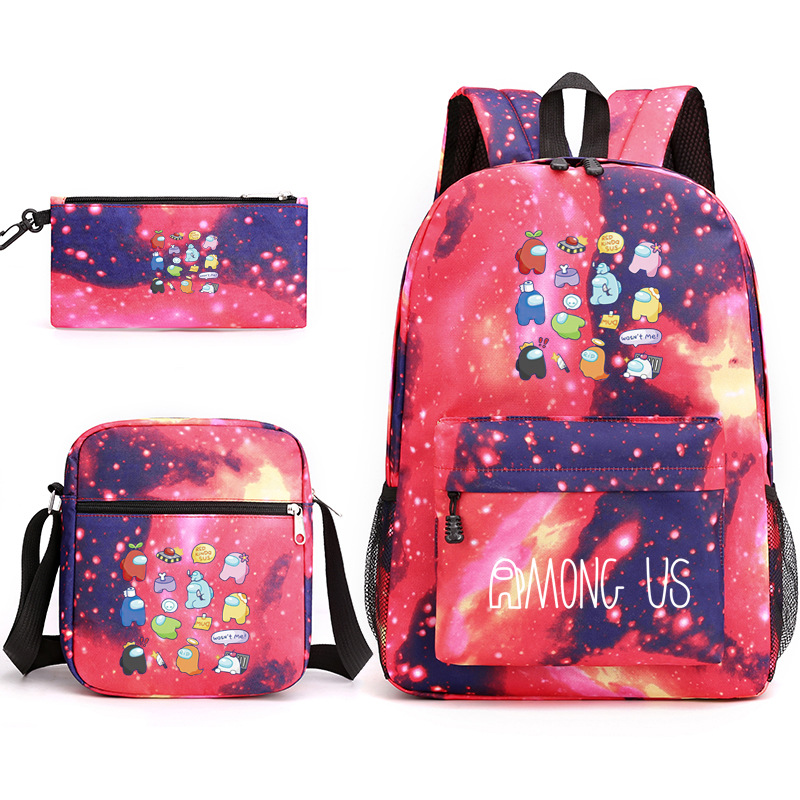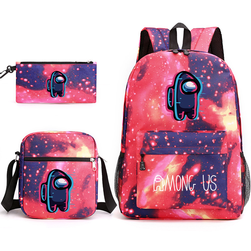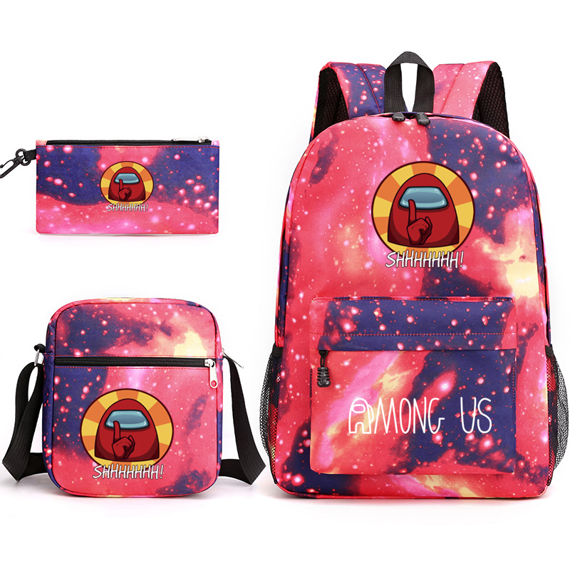 우리 중 게임 중 우주 늑대 킬 백팩 작은 어깨 가방 연필 가방 3 종 세트 책가방