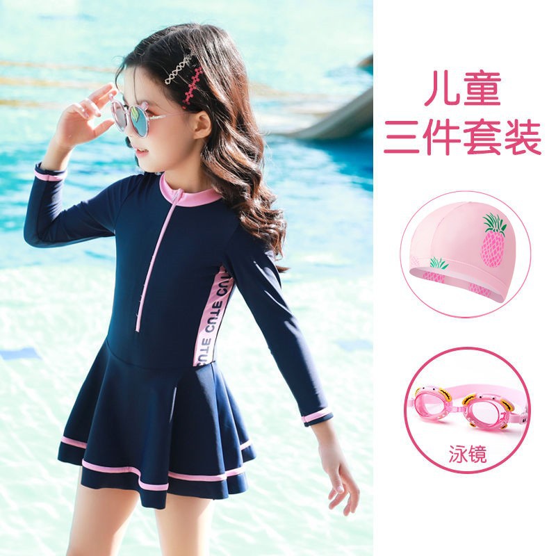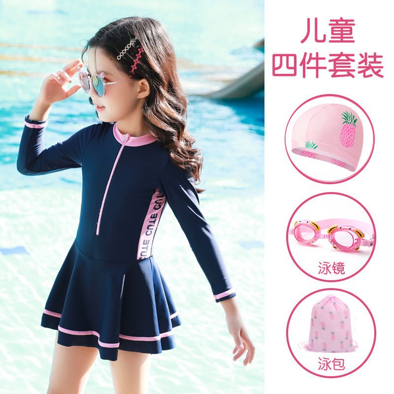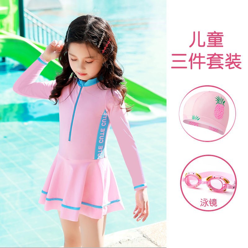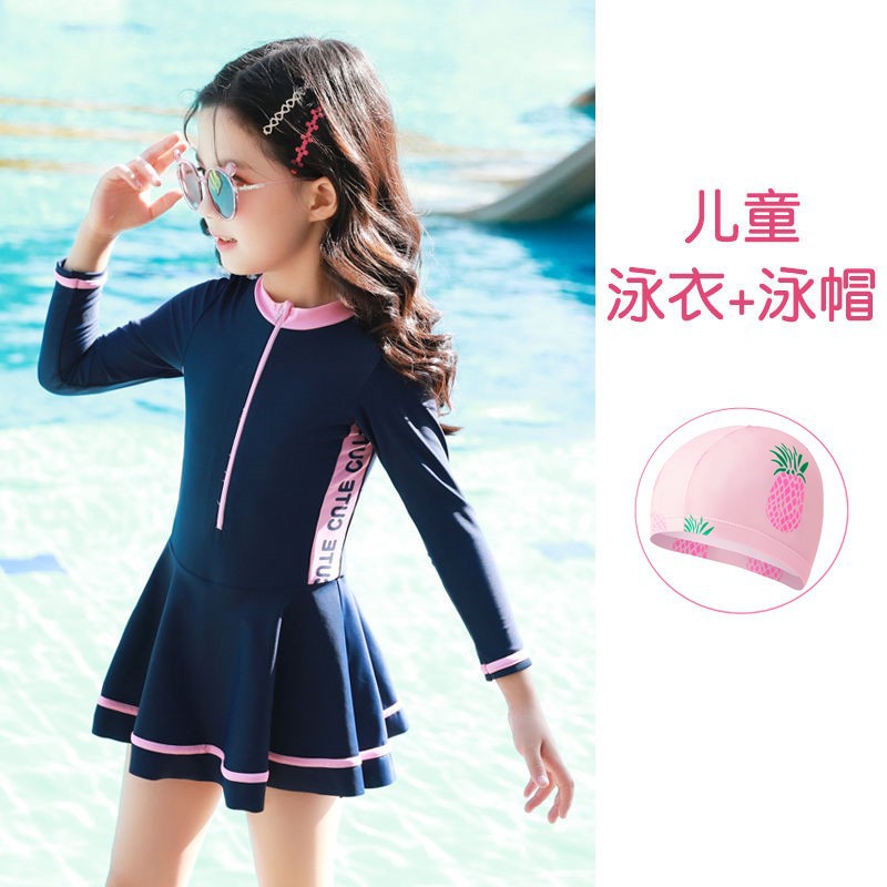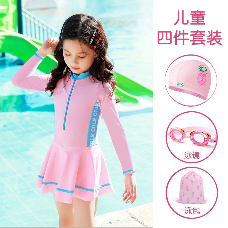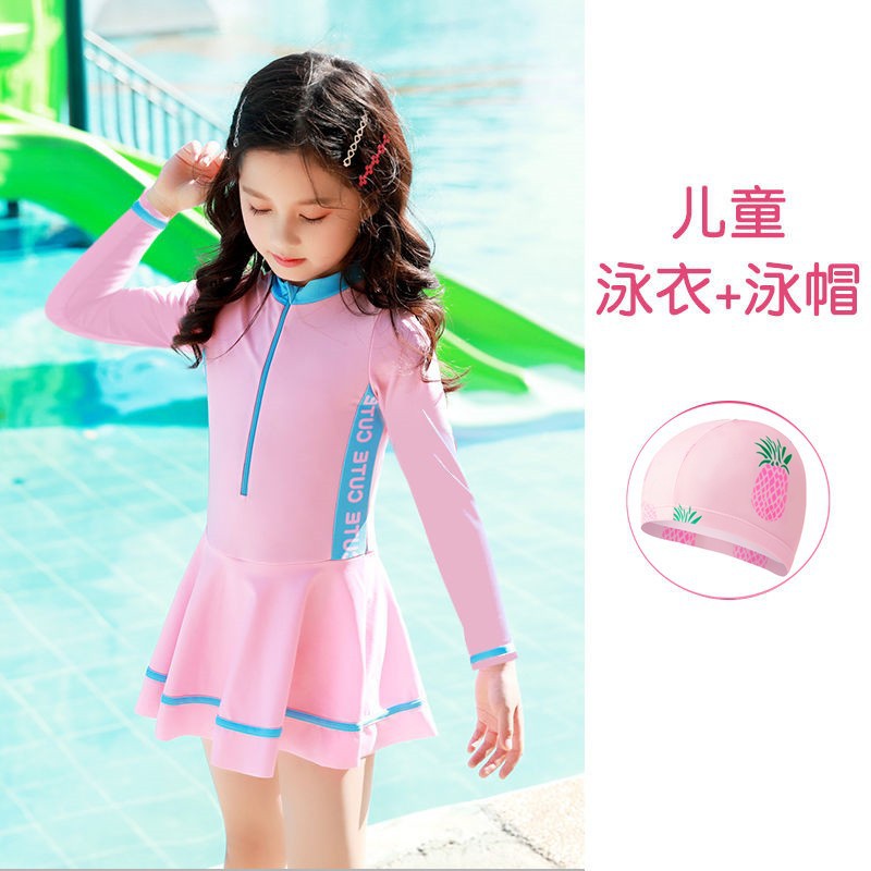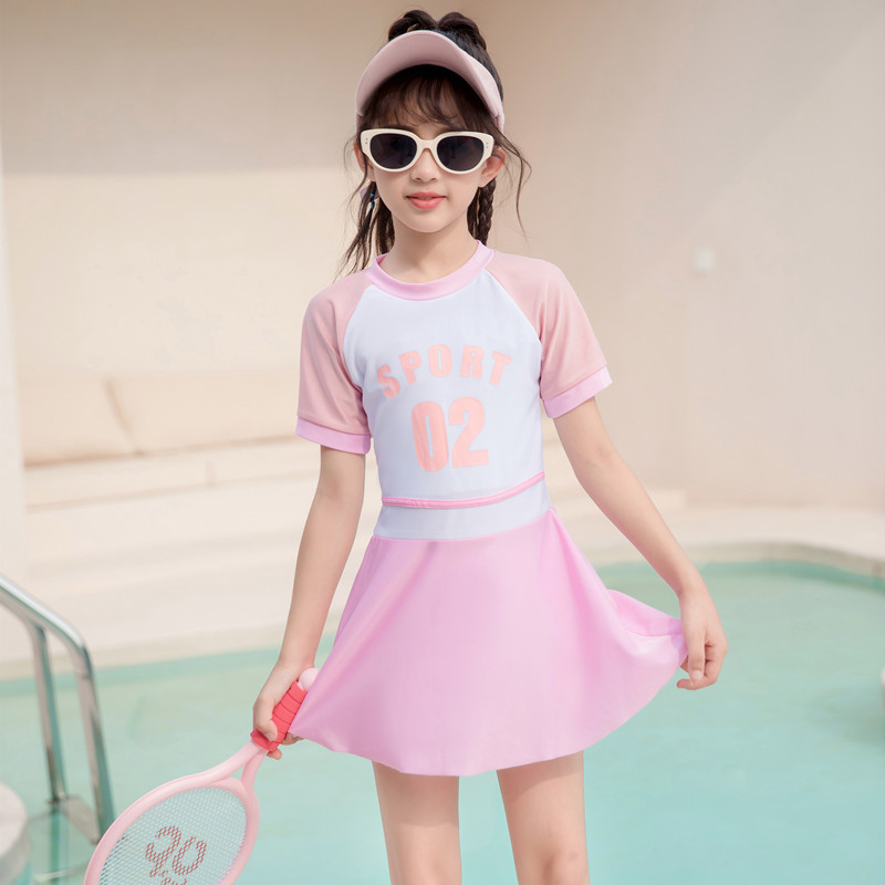 여아 새로운 색상 매칭 스포츠 캐주얼 원피스 스커트 스타일 여성용 보수적 인 소형, 중형 및 대형 어린이 아기 온천 수영 세트스토어 가기