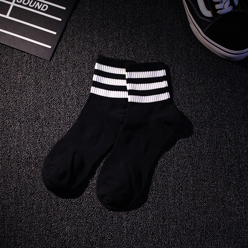 • 중간 튜브 3 바 흰색 바 검은 양말