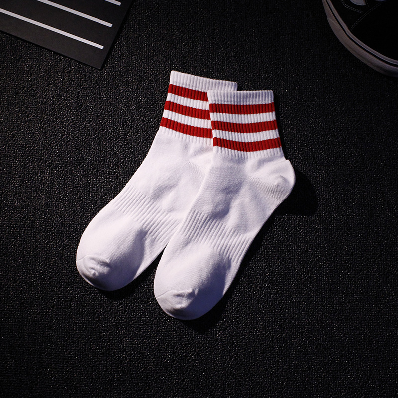 • 중간 튜브 3 바 빨간색 막대 흰색 양말