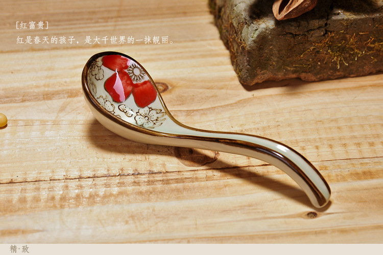 긴 손잡이 스푼 창조적 인 스푼 믹싱 스푼 일본식 세라믹 한국식 중형 스푼 저녁 식사 가정용 주방 식기