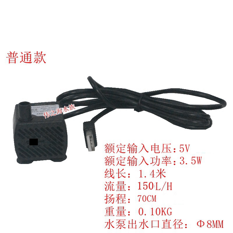 USB微型直流水泵..可插充电宝上供电用.也可插在5V输出的USB电源端口上用。安全系数高的潜水泵,低压直流电压,不漏电不伤人不伤鱼,可用于水族鱼缸过滤,电脑水冷散热,户外垂钓.自动浇花等。