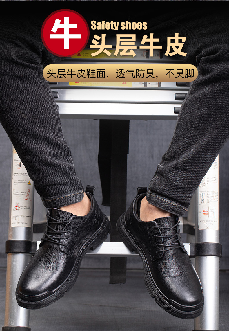 국경 간 노동 보호 신발, 충격 방지 및 펑크 방지, 남성용 작업 여름 통기성 및 내마모성 안전화, 건설 현장 1층 소가죽스토어 가기