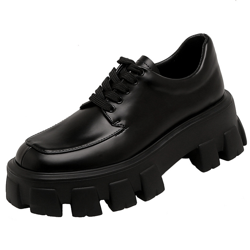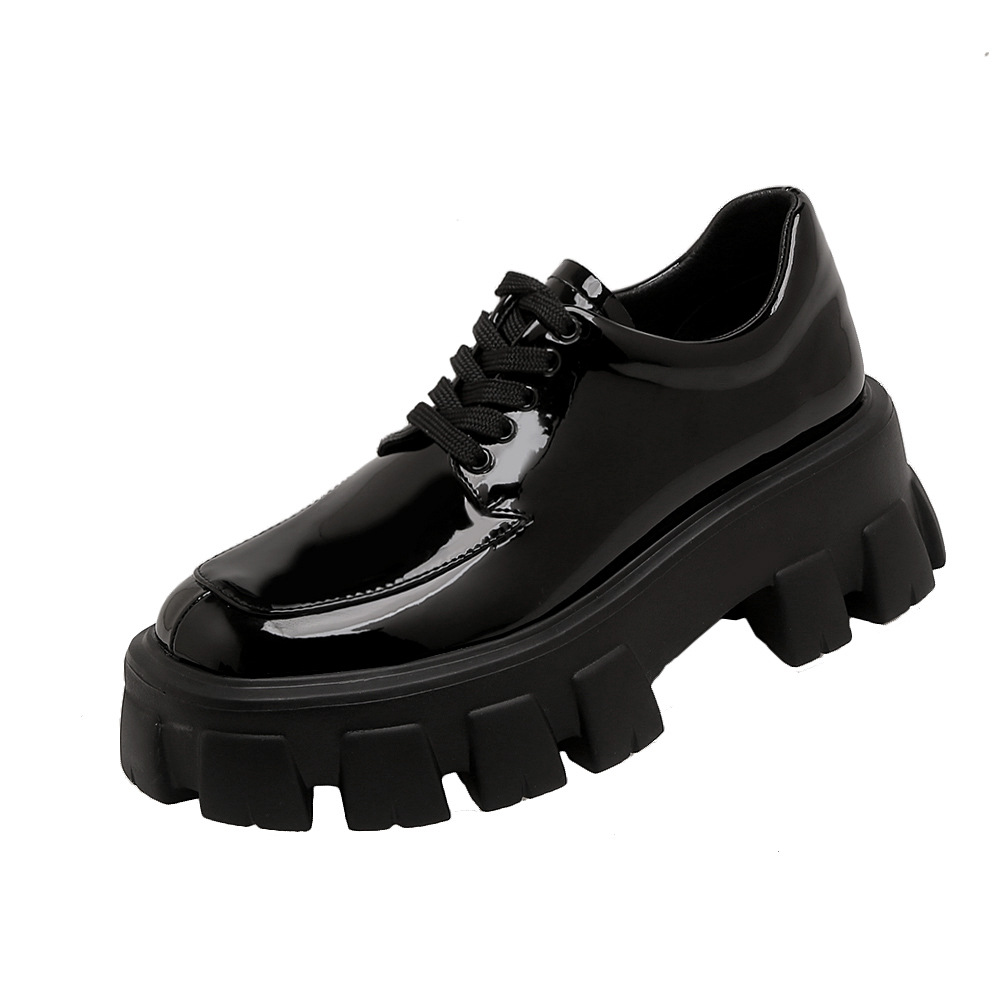 Liu Wen의 같은 스타일 대학 영국 스타일 여성용 작은 가죽 신발, 두꺼운 밑창 로퍼, 여성용 플랫폼 신발, 사이즈 33 페이턴트 가죽 신발스토어 가기