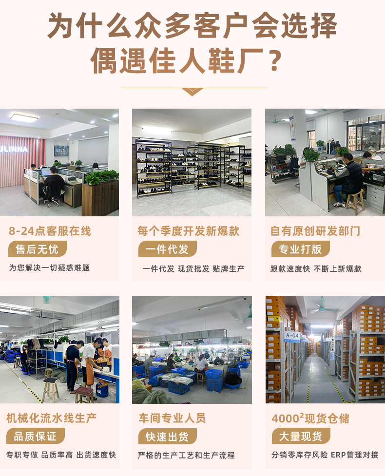 我们工厂专业化流水线生产,实力源头厂家,拥有自己的开发团队及专业的试脚模特。 亲们放心采购我们家的任何产品,保质保量。