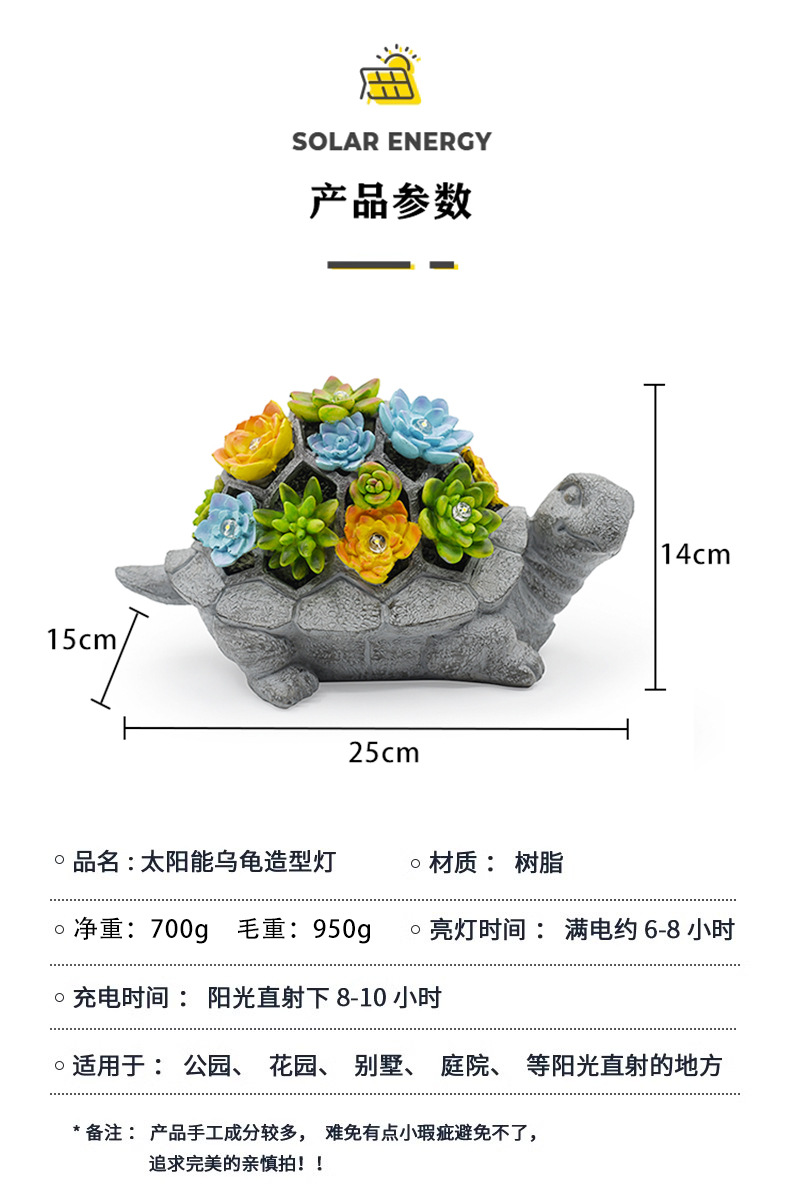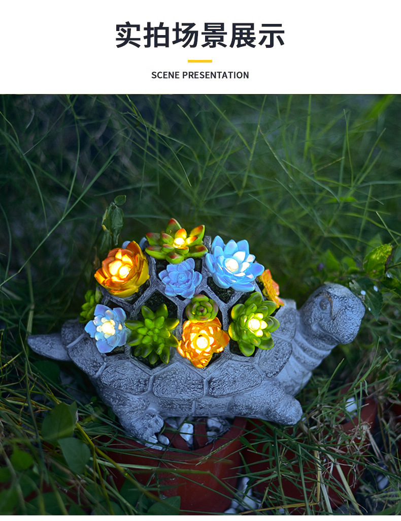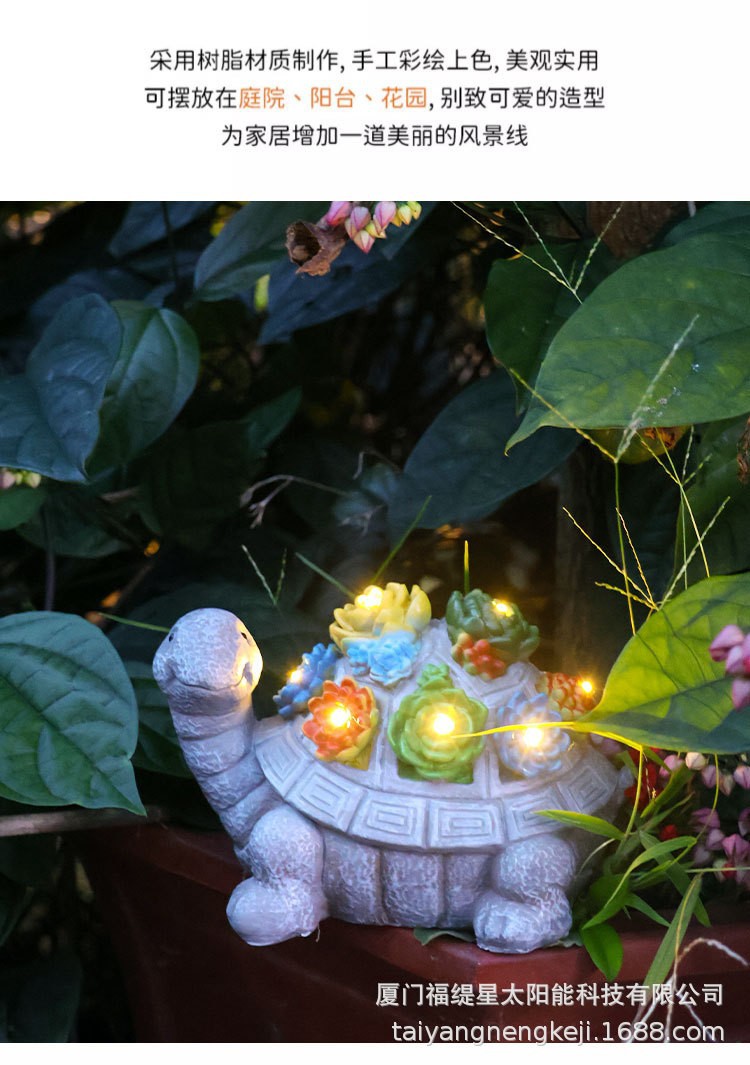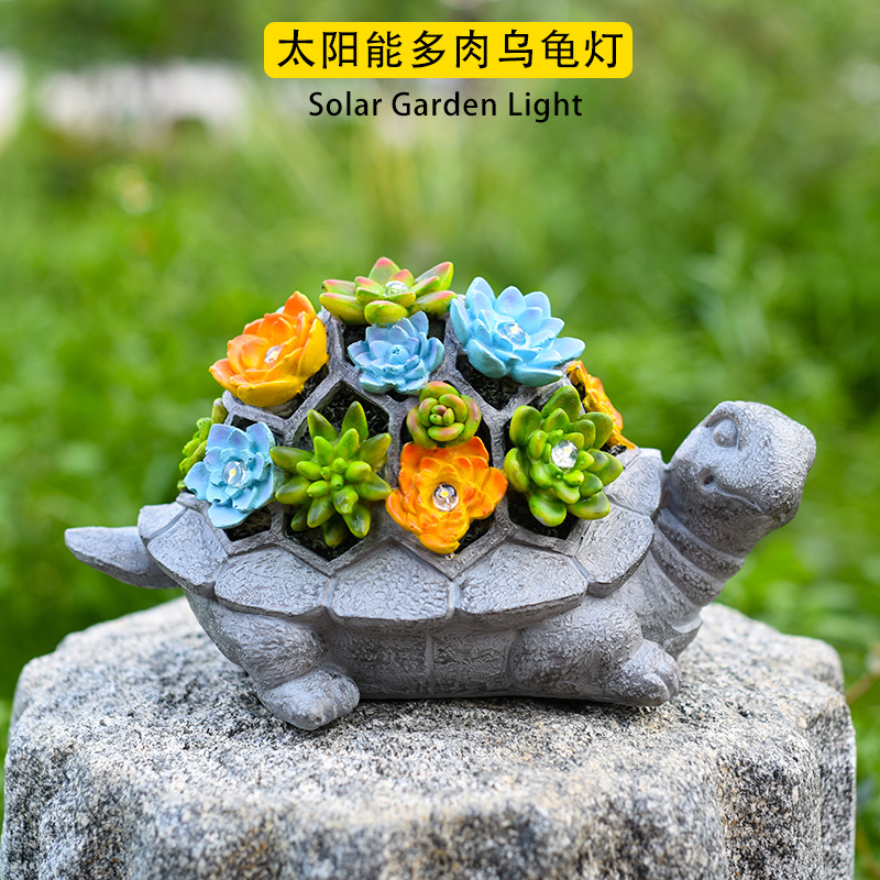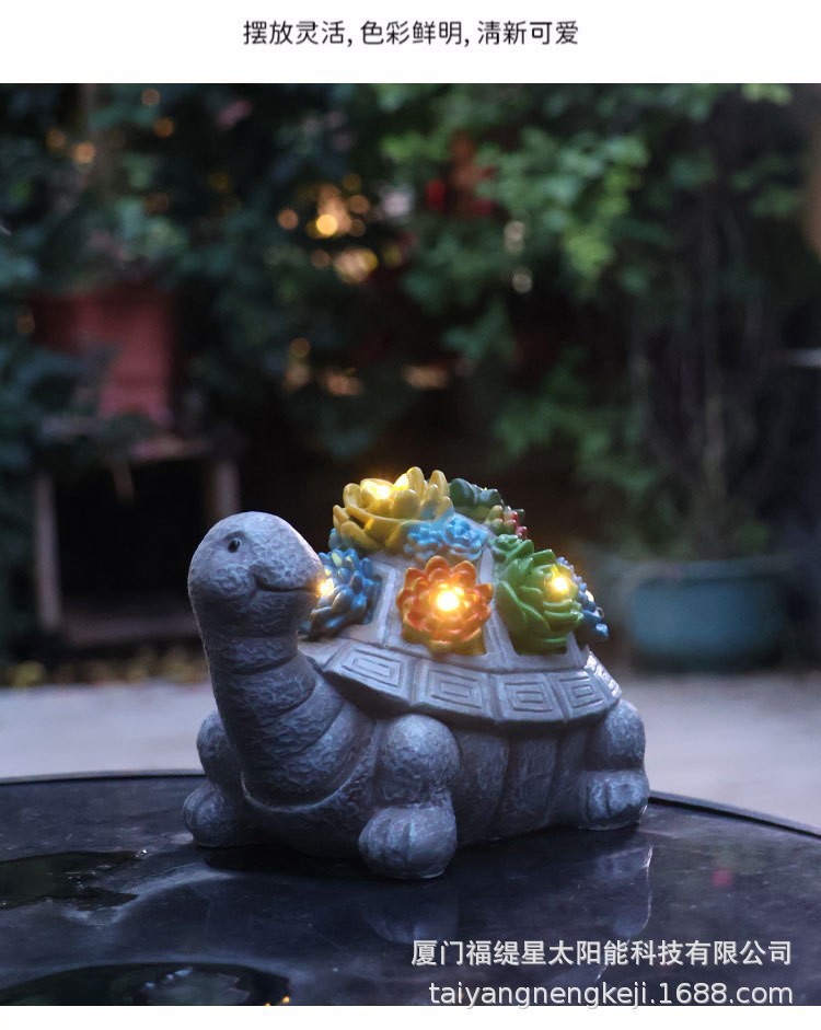 아마존 야외 태양 다육 거북이 동상 수지 공예 동물 정원 정원 정원 빛 장식품