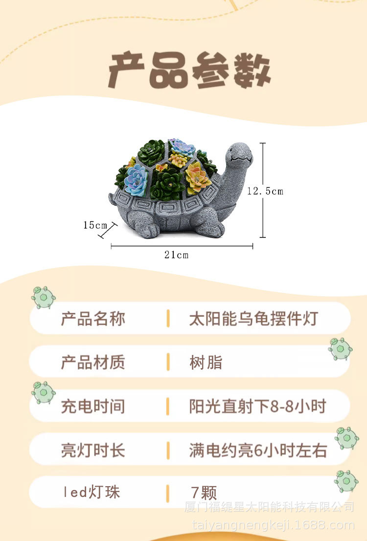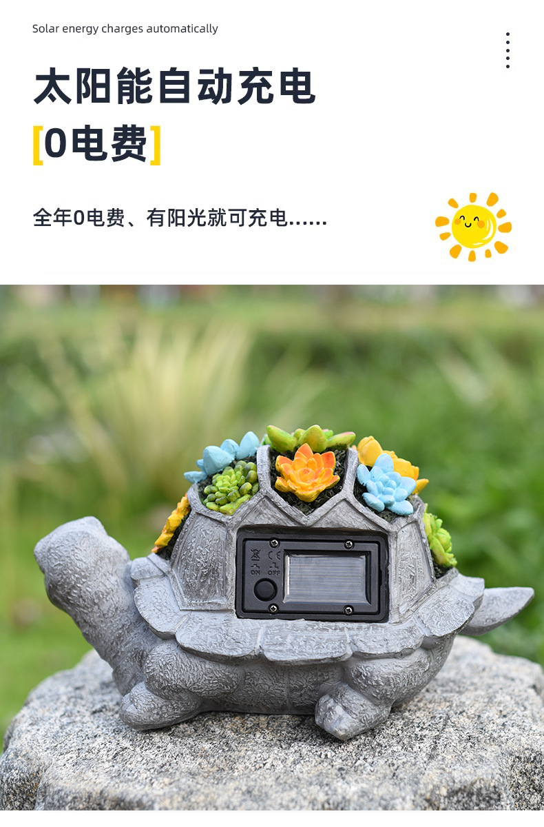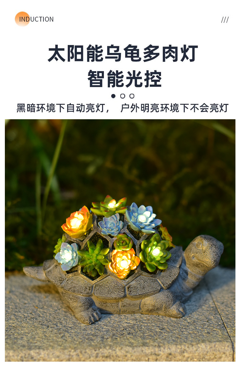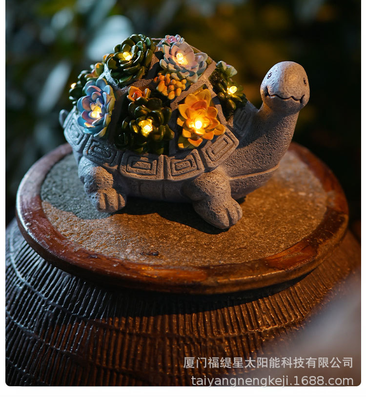 아마존 야외 태양 다육 거북이 동상 수지 공예 동물 정원 정원 정원 빛 장식품