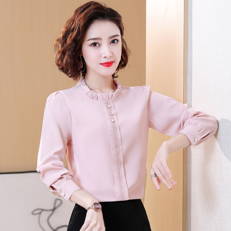 쉬폰 셔츠 여성의 봄과 가을 새로운 한국 패션 중공 레이스 자카드 디자인 센스 셔츠 전문 긴팔 탑스토어 가기