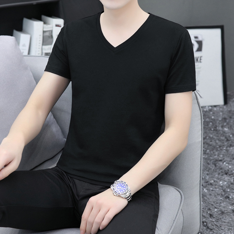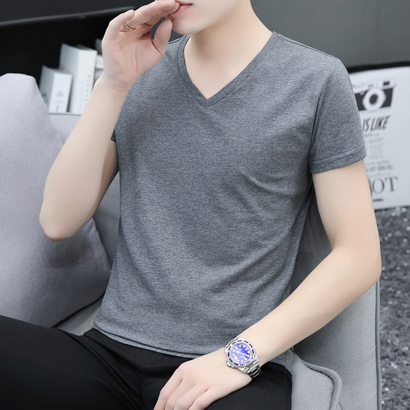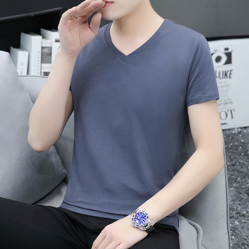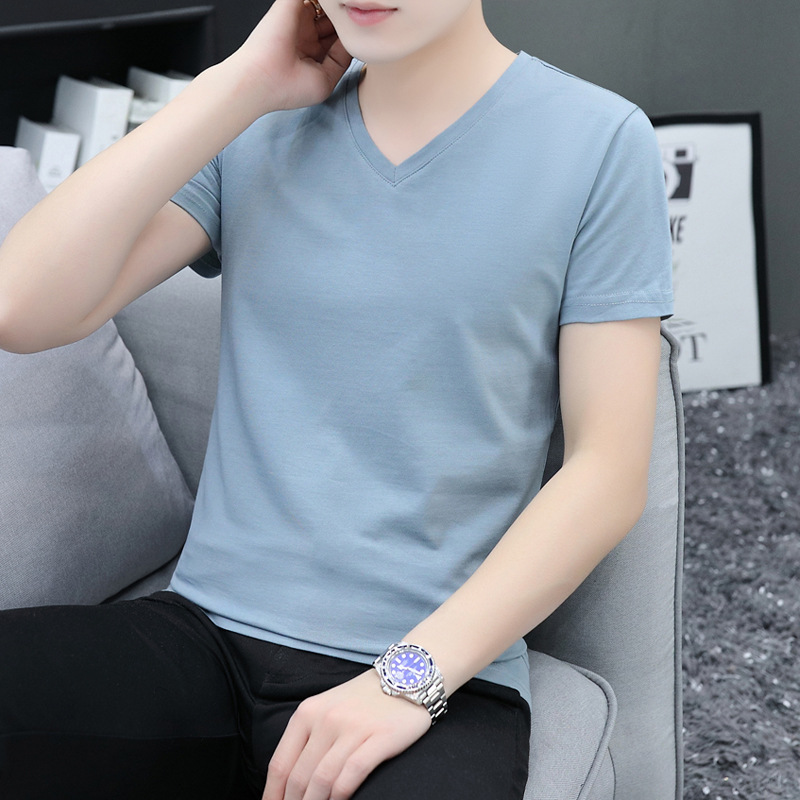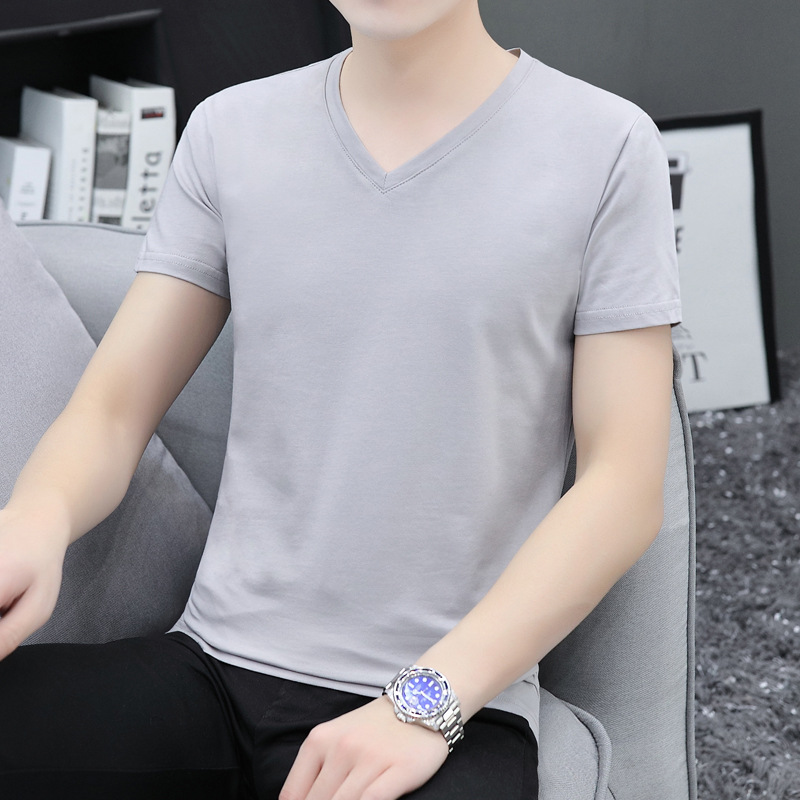 솔리드 컬러 브이넥 반팔 티셔츠 남성용 티셔츠 남성용 면 슬림핏 반팔 티셔츠 베이스 셔츠스토어 가기