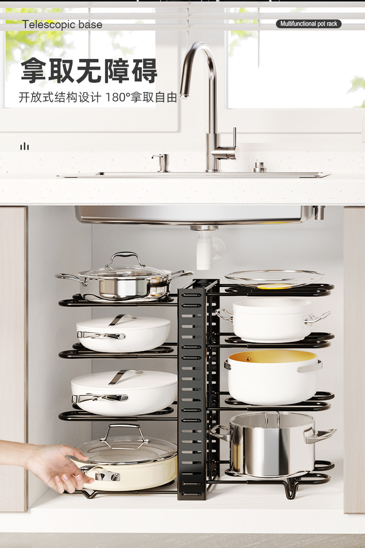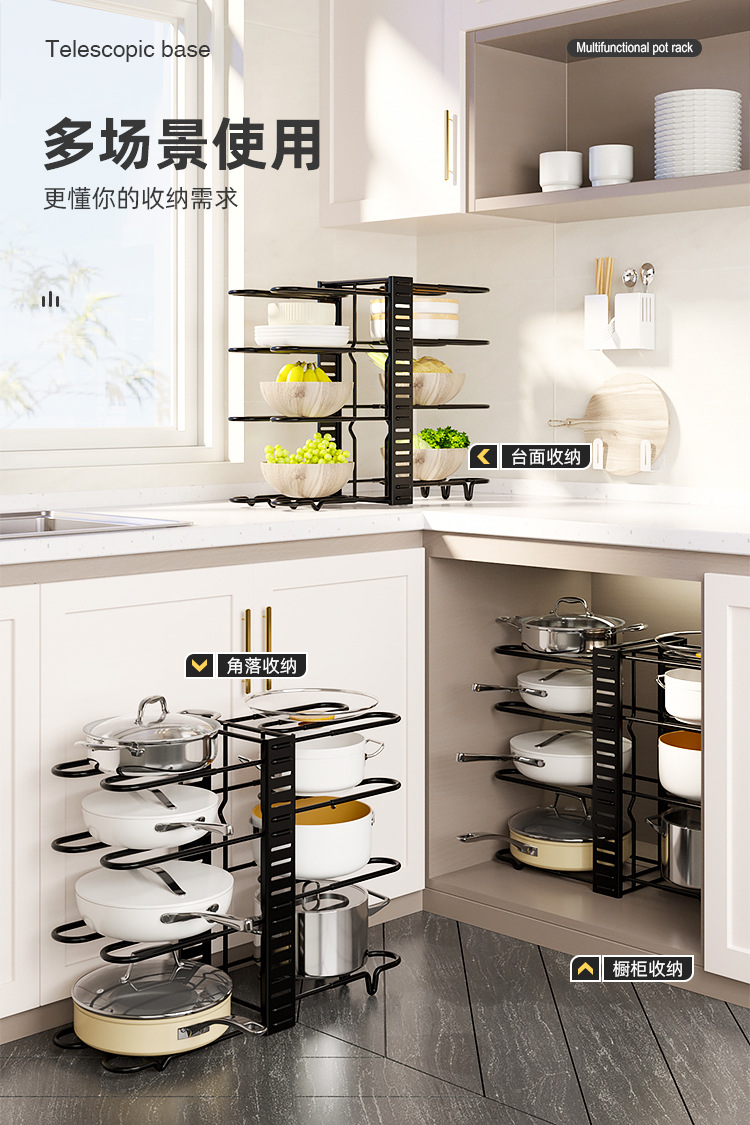 Fengyue 크리 에이 티브 다층 접이식 앉아 냄비 뚜껑 랙 주방 스토리지 랙 철 다기능 양면 냄비 랙