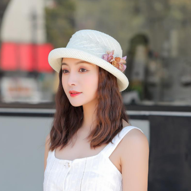 2021 시즌 새로운 영국 차양 밀짚 모자 여성 패션 우아한 여성의 꽃 탑 모자 어부 모자 어머니 분지 모자
