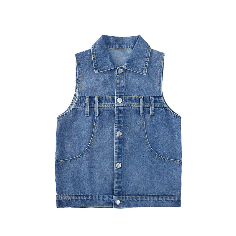 어린이 툴링 데님 조끼 코트 여아 봄과 가을 유행 싱글 브레스트 데님 탑