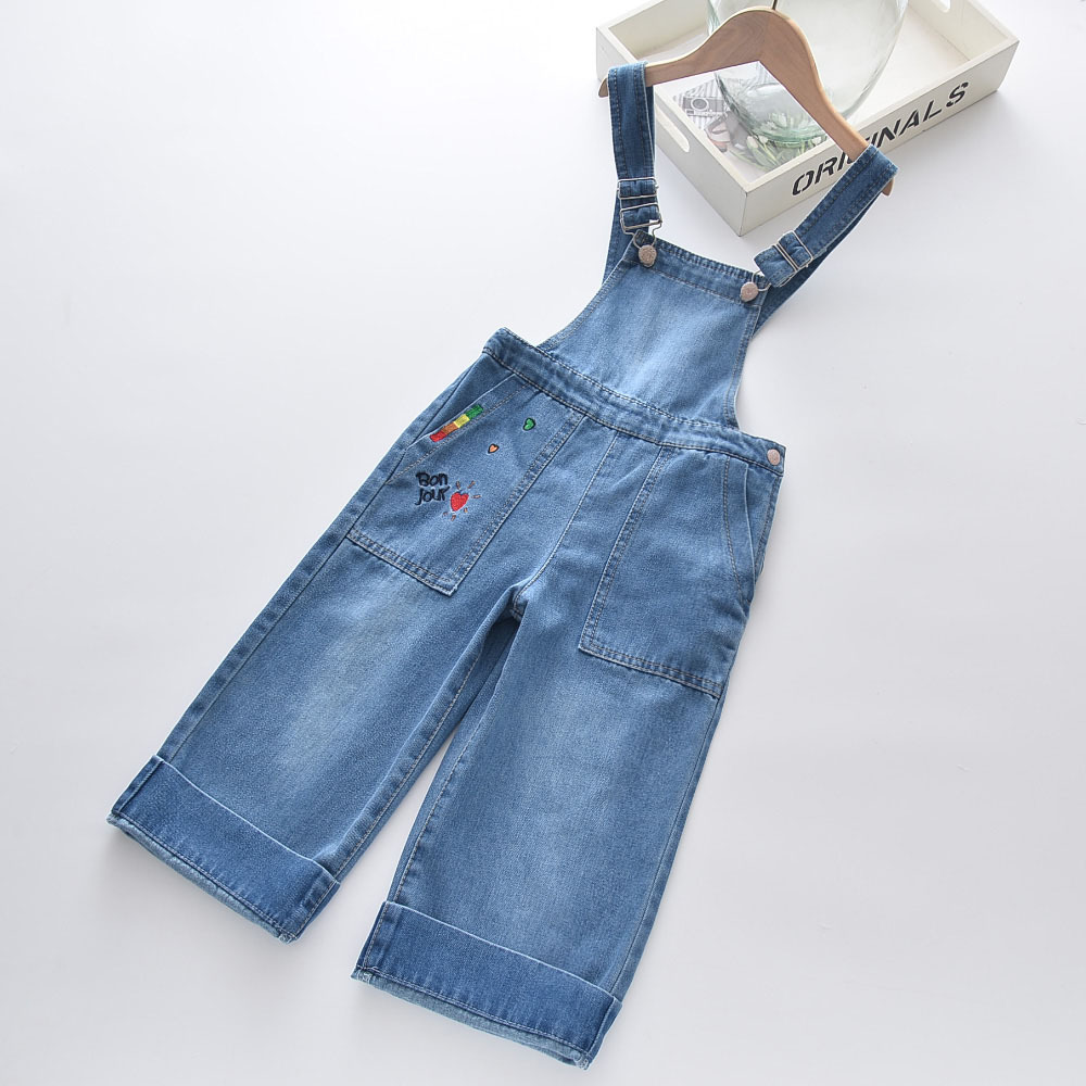 2021春季新款 卡通刺绣 女童牛仔背带裤